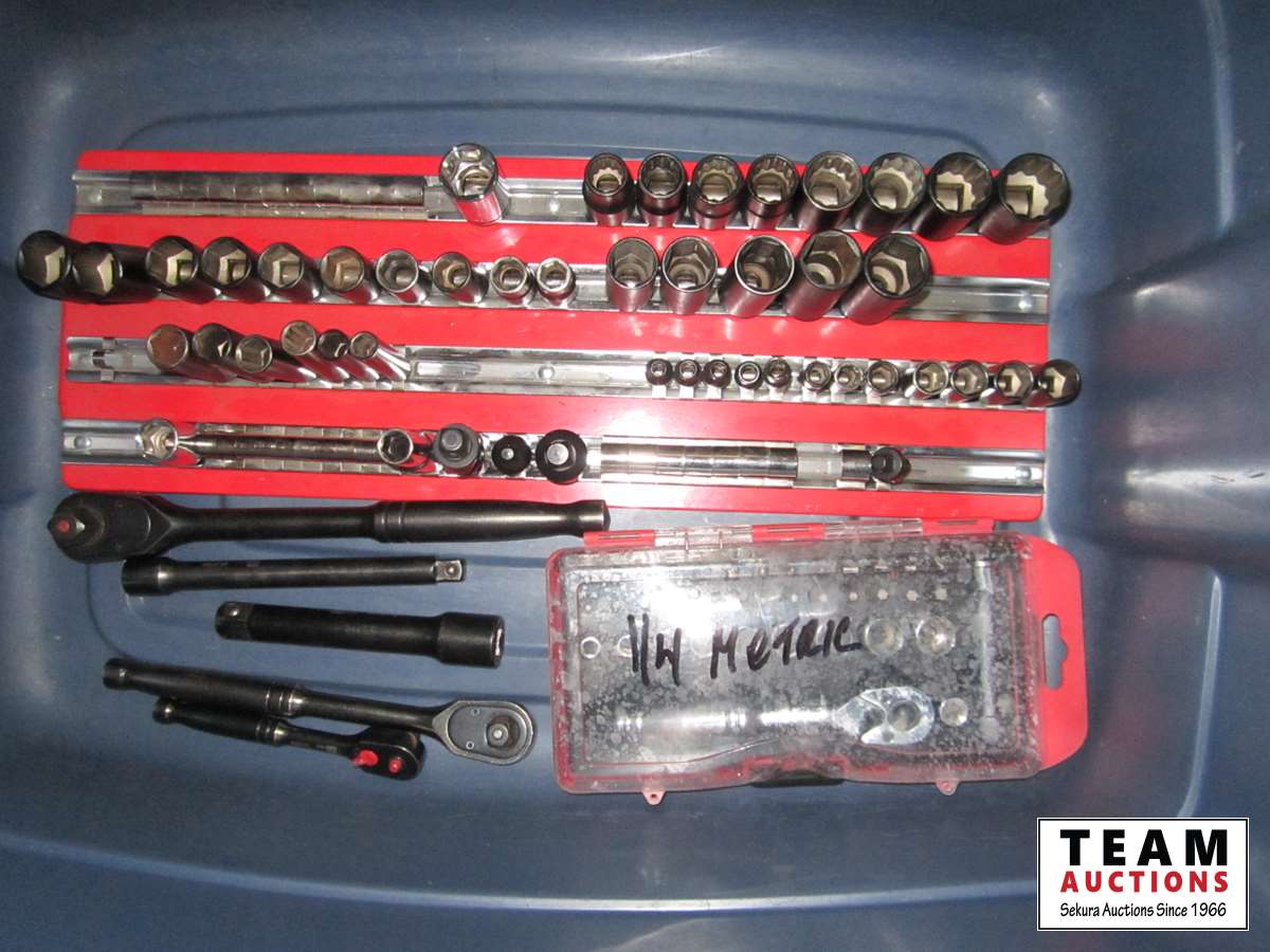 61 Bin w/Assorted Socket Wrenches & Sockets