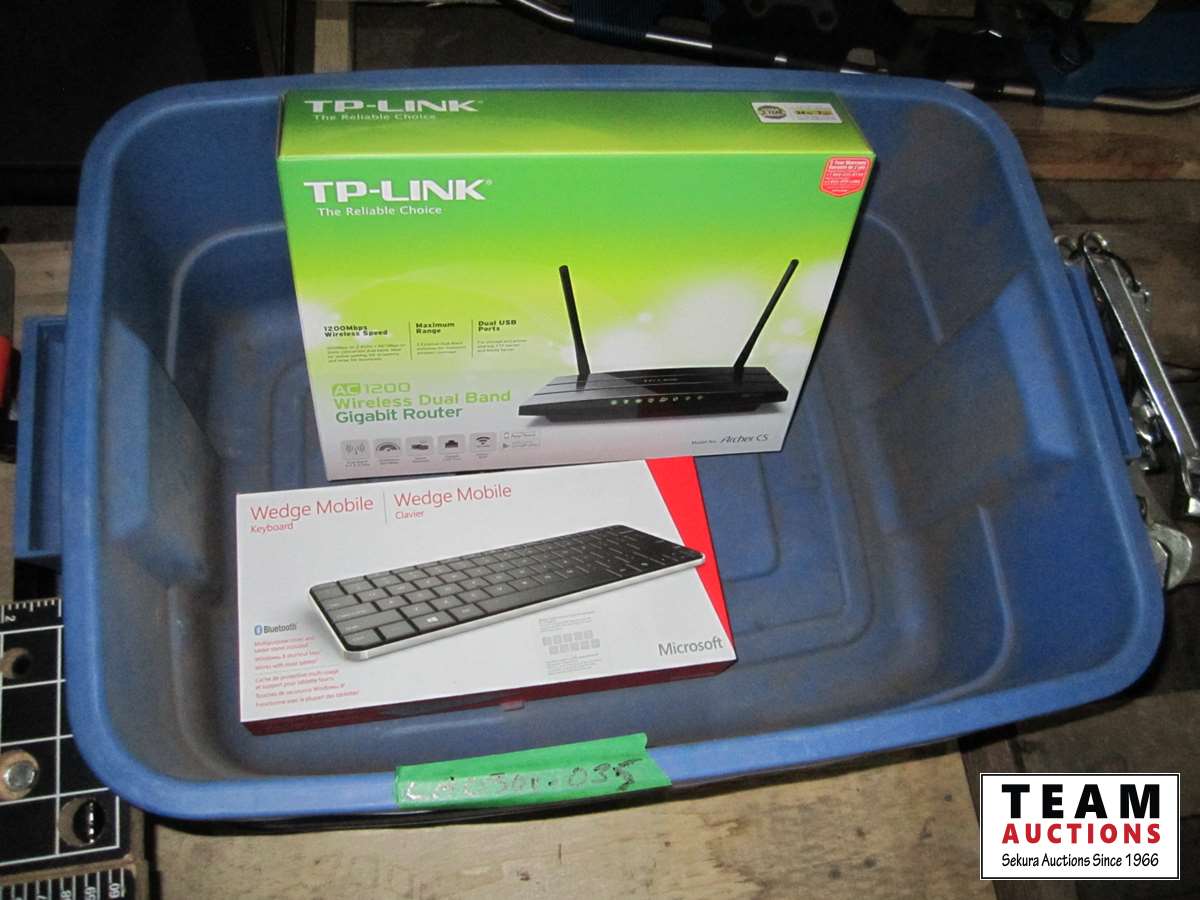 (1) TP-Link wireless dual band gigabit router, (1) Wedge mobile keyboard