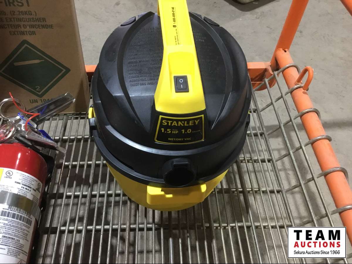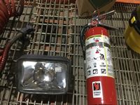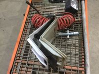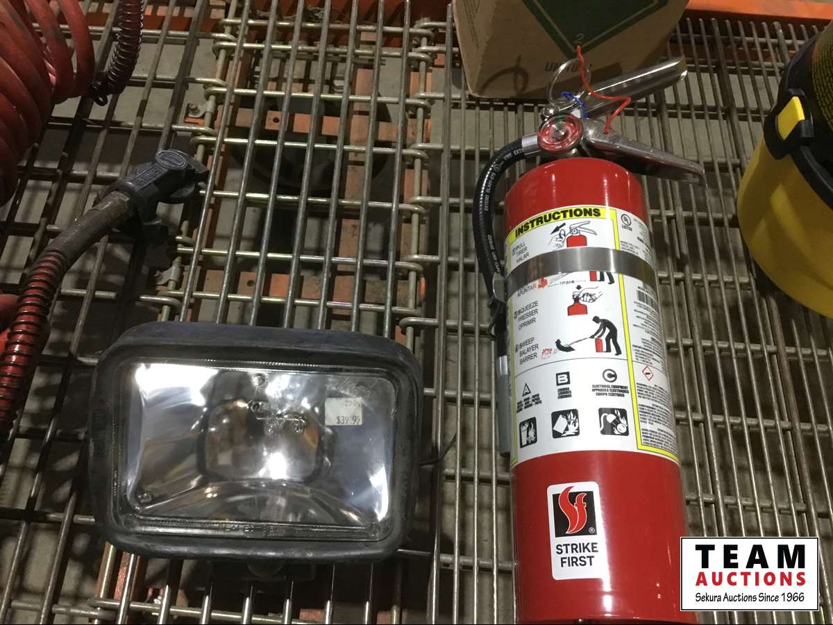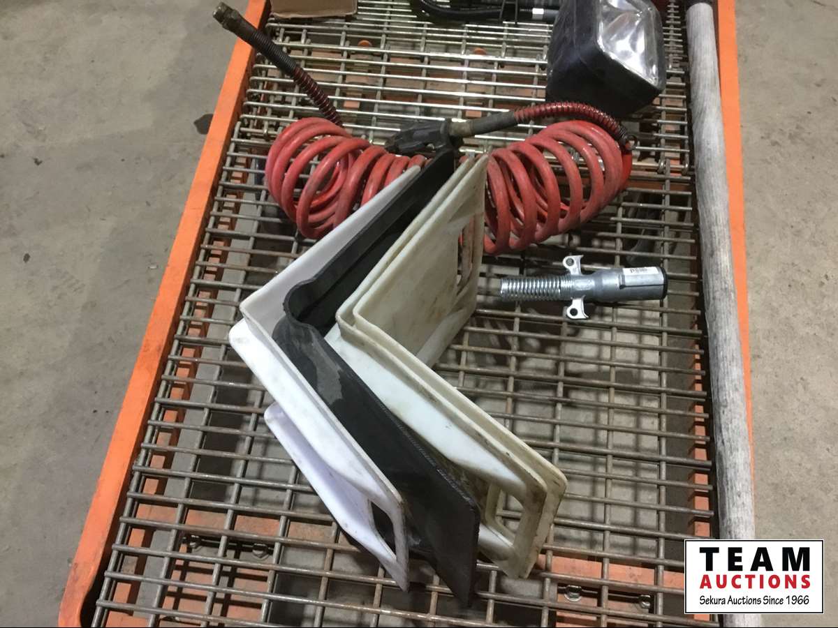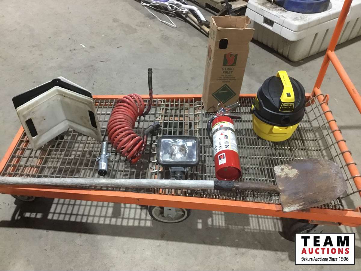 (4) plastic corners, airline, new light plug, new back up light, new fire extinguisher, Stanley vacuum cleaner (works but no hose), long handle spade