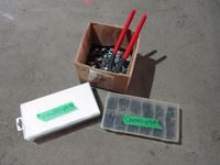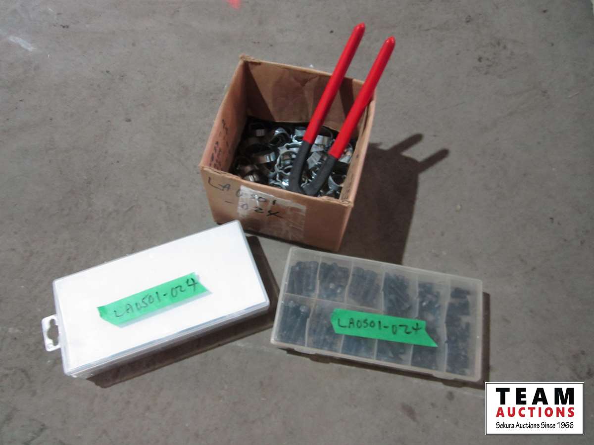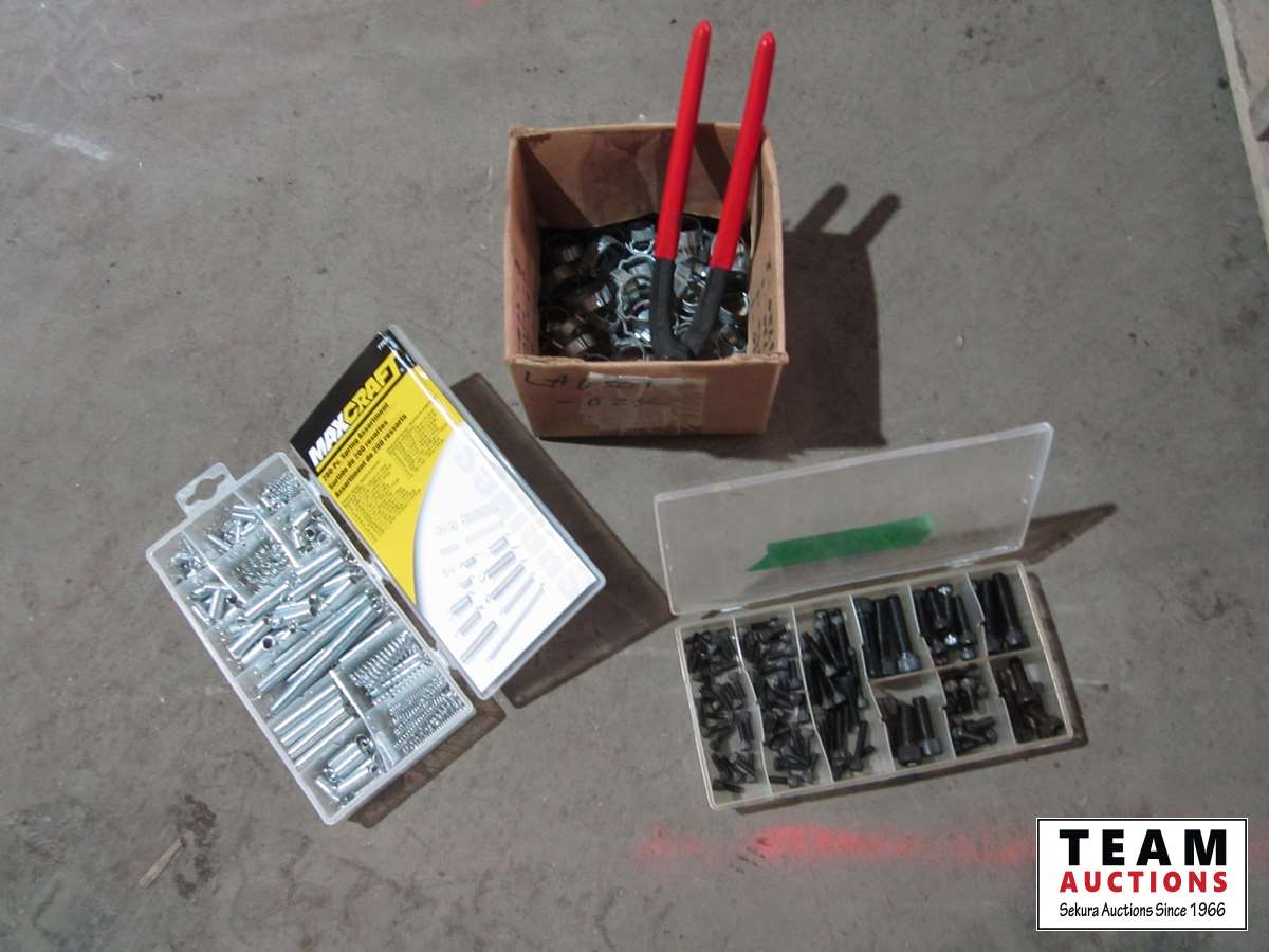 (1) container misc. springs, (1) container misc. set screw bolts, (1) box clamps & pliers