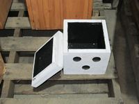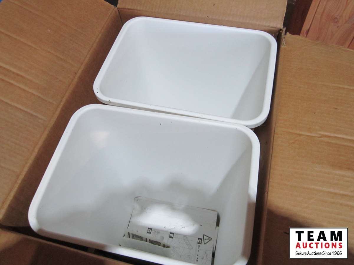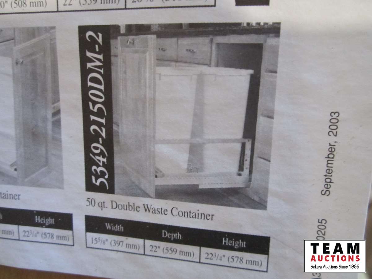 50 qt. double waste container drawer mount kit, decorative dice box, (2) planters, 2' high, inside measurements, 9.25" x 11" x 9.75"D