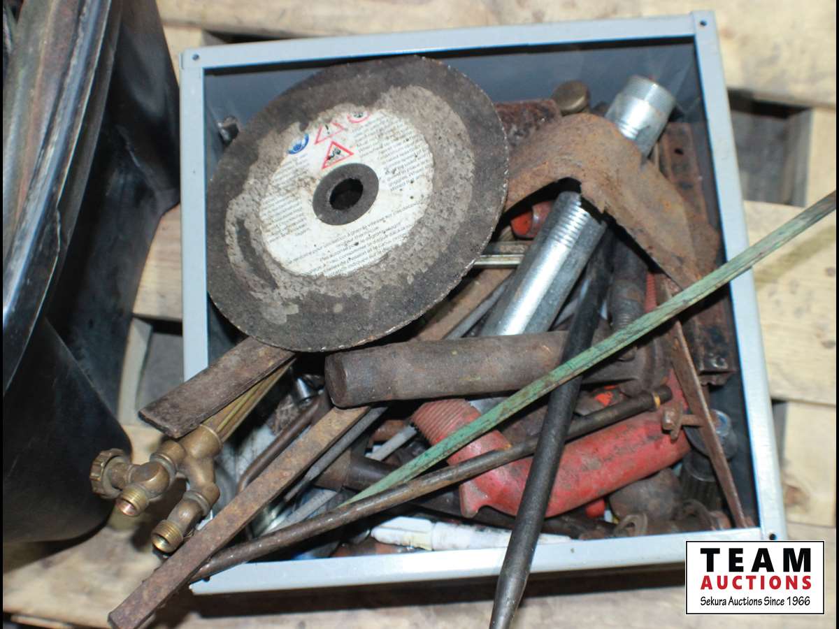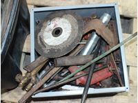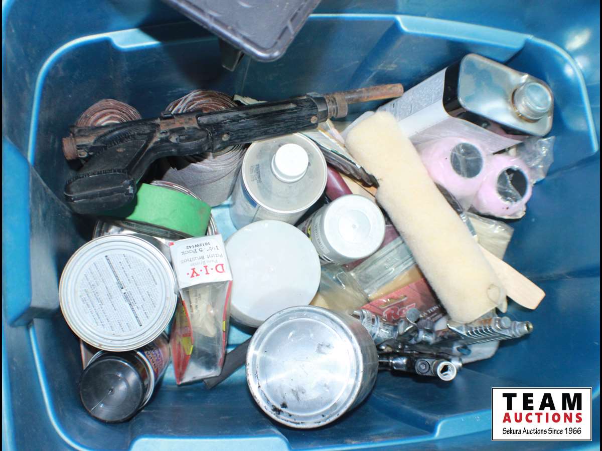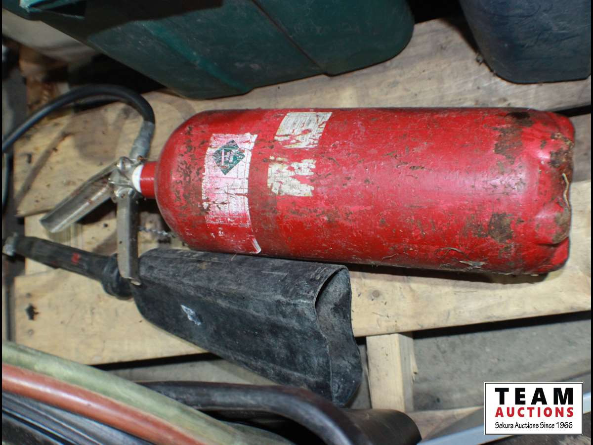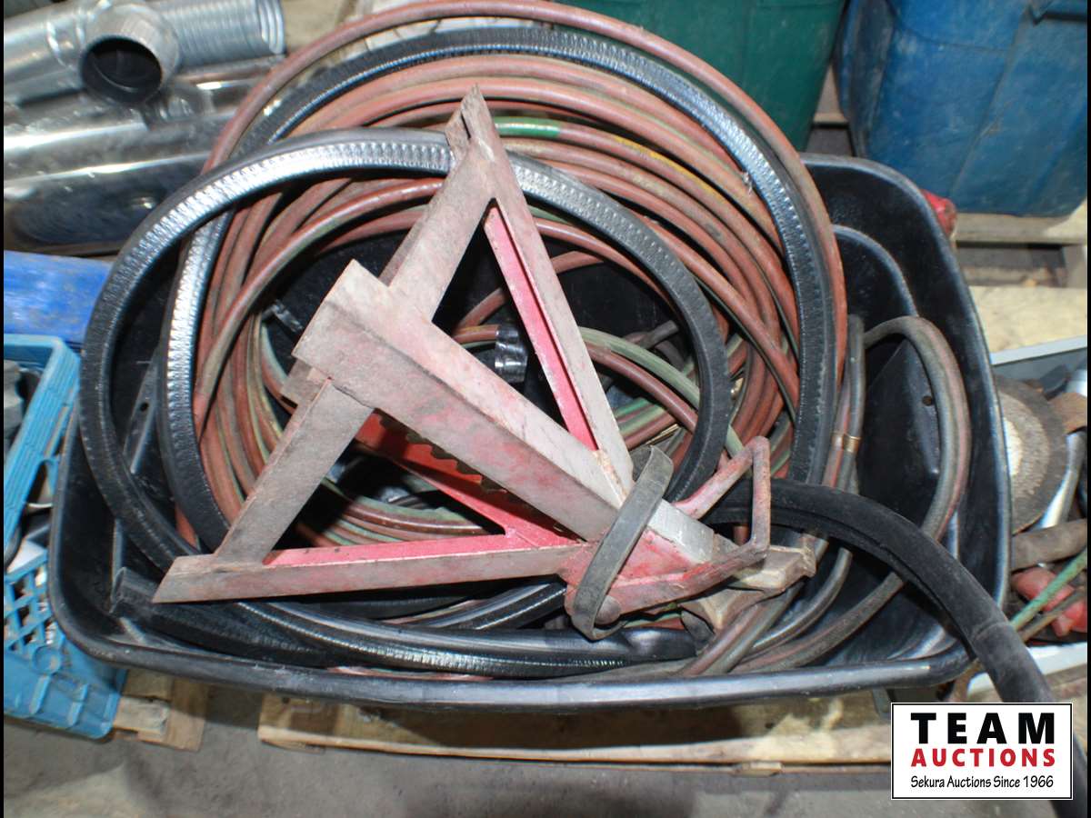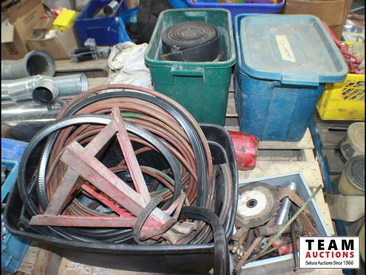 belting, fire extinguisher, painting supplies, hose stand, misc.
