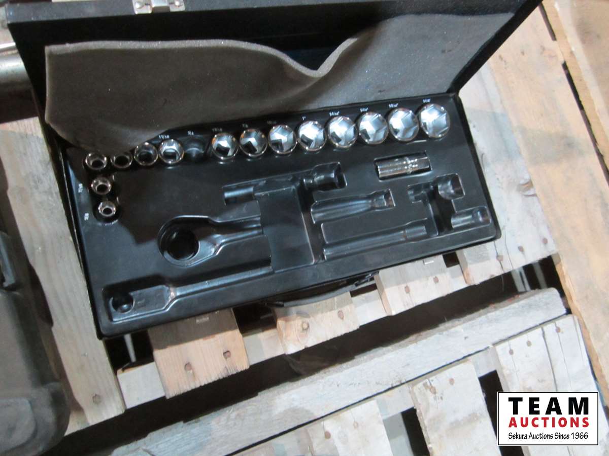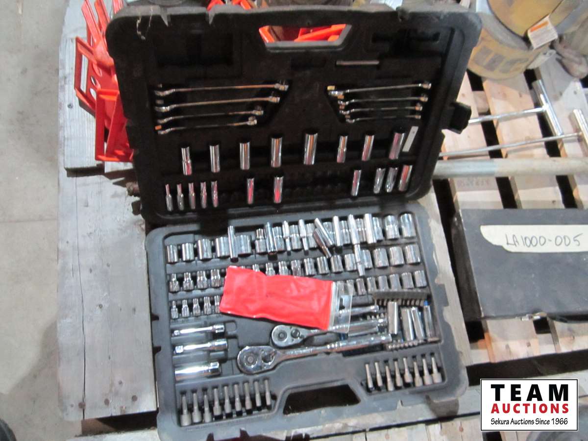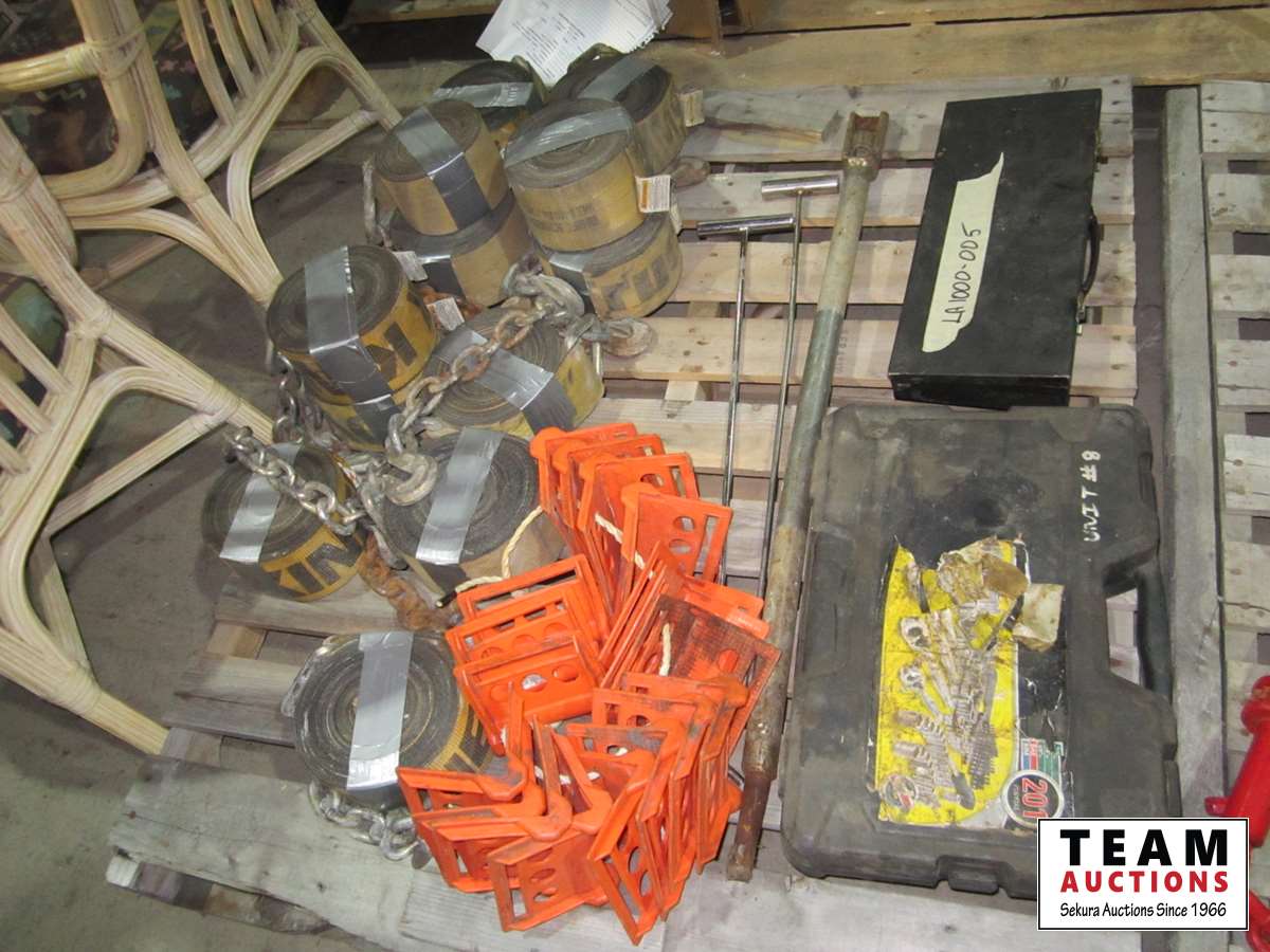 heavy truck tie down straps w/chains, sockets/wrenches tool kit, emergency markers