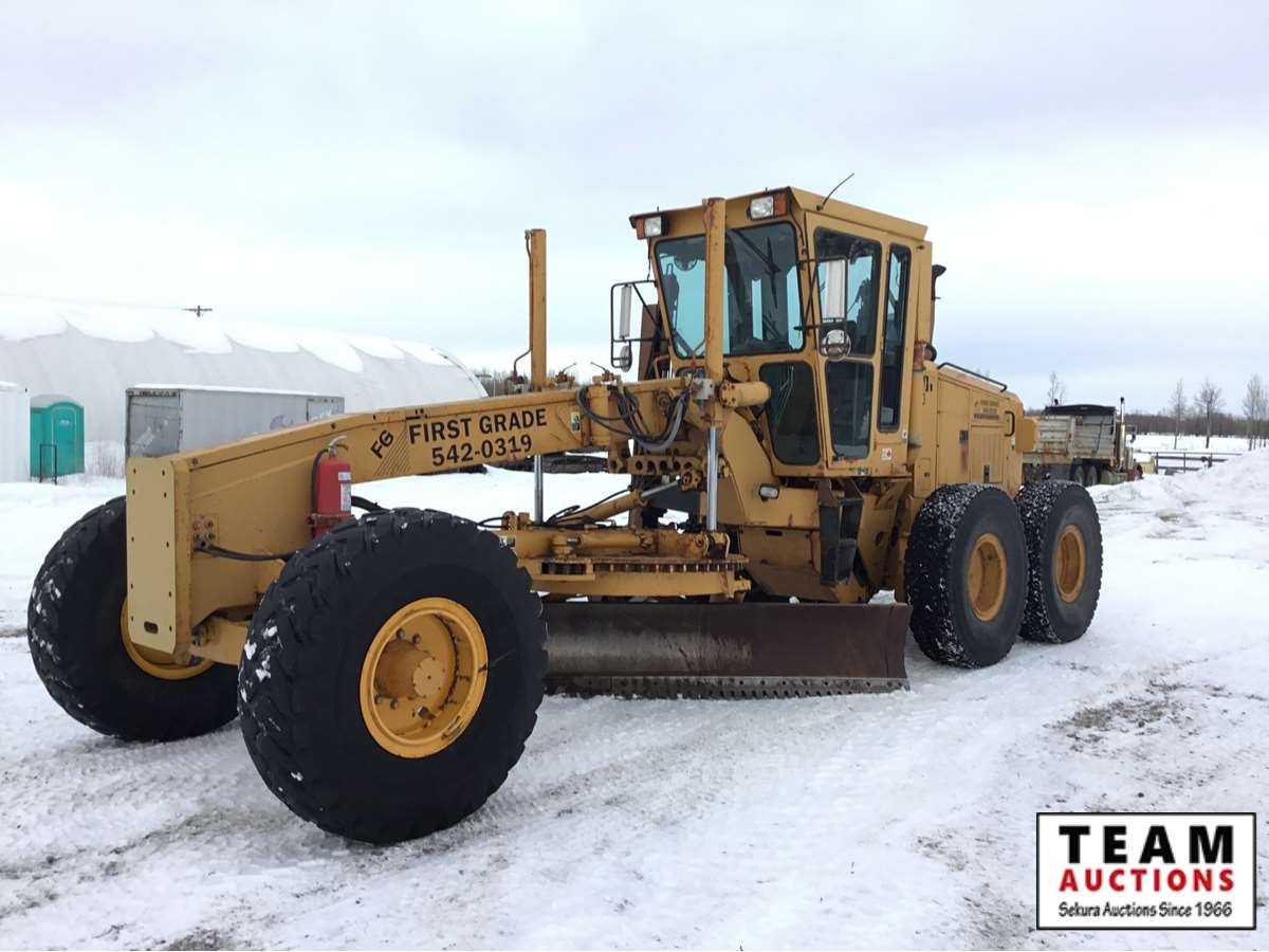 Cummins M11 engine, 8 speed power shift transmission, blade float controls, snow wing winter drive tires, cab, A/C, heater, radio, 300W power inverter, approx 6000 hrs on Cummins rebuilt engine, approx 4000 hrs on rebuilt transmission, clutch has been replaced, lots of minor repairs done along with maintenance records, 18,855 hours