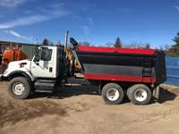 HT570 diesel engine, Eaton Fuller 10 speed transmission, AC, PL, PW, heated mirrors, air ride drivers seat, dual high back seats,1 3yd. capacity dump body, ATR ride cab, air assist front suspension, spring type suspension, dual steering boxes, double frame, 206" wheel base, 6 x 4, 20,0001b. front axle, 40'0001b. rears, Viking Caves 13 yard dump body