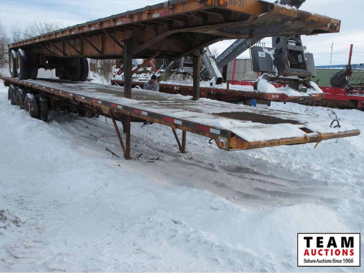 8' 6" wood deck, live rear roll, cargo winches, side rail, spring suspension, sliding axles, fold up landing gear, 295/75R22.5 rubber