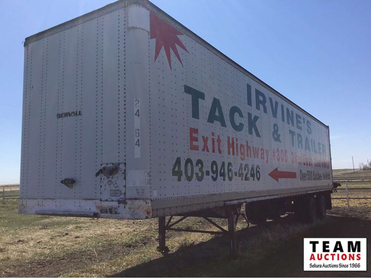 good roof, rear doors need repair (hinges loose), all tires are on unit, no current CVIP, last registered in Alberta