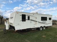 original owner, outdoor shower, full bathroom, air conditioning, propane/electric fridge, propane/electric hot water tank, propane furnace, micro wave, 1 slide, scissor bed couch, queen bed, kitchen table bed, stereo