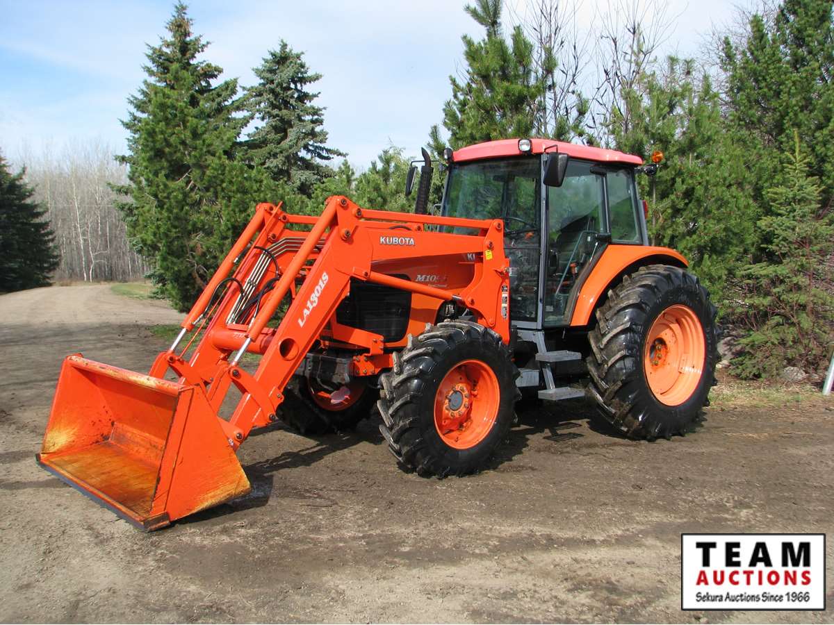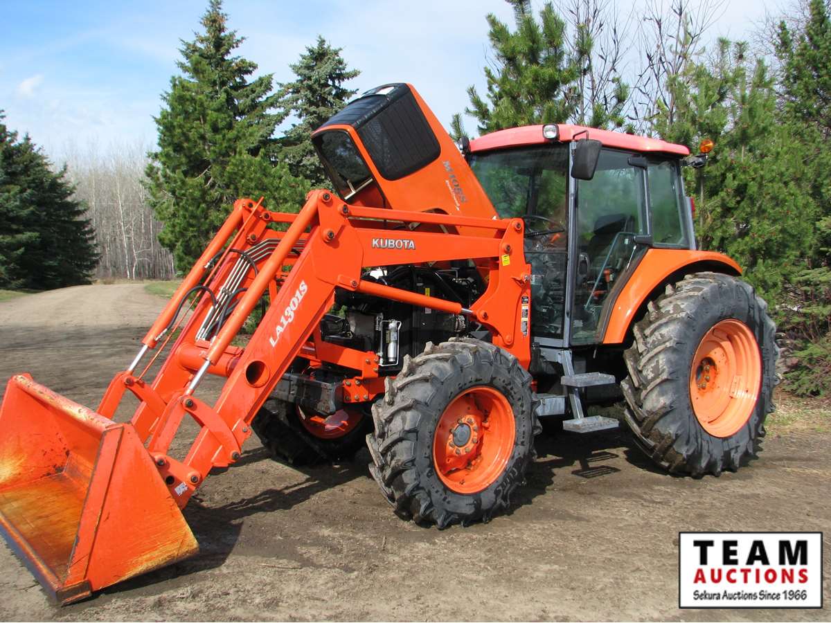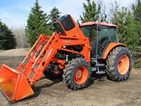 Kubota LA1301S loader, Q/A 7 ft bucket, Cab, left hand reverser, 16 speed transmission, 3 PT, (2) sets of hydraulic outlets, 540/1000 pto, 340/85R24 front & 18.4-34 rear rubber, 1681 hrs