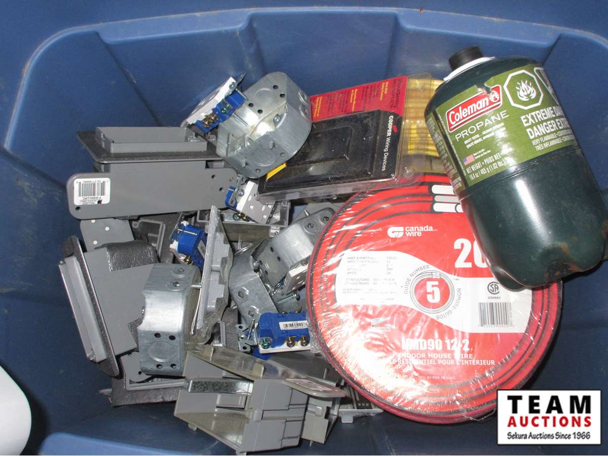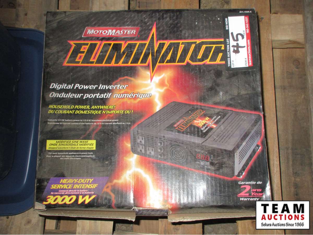 45 Eliminator 3000W Invertor & Tote of Electrical Boxes & Items
