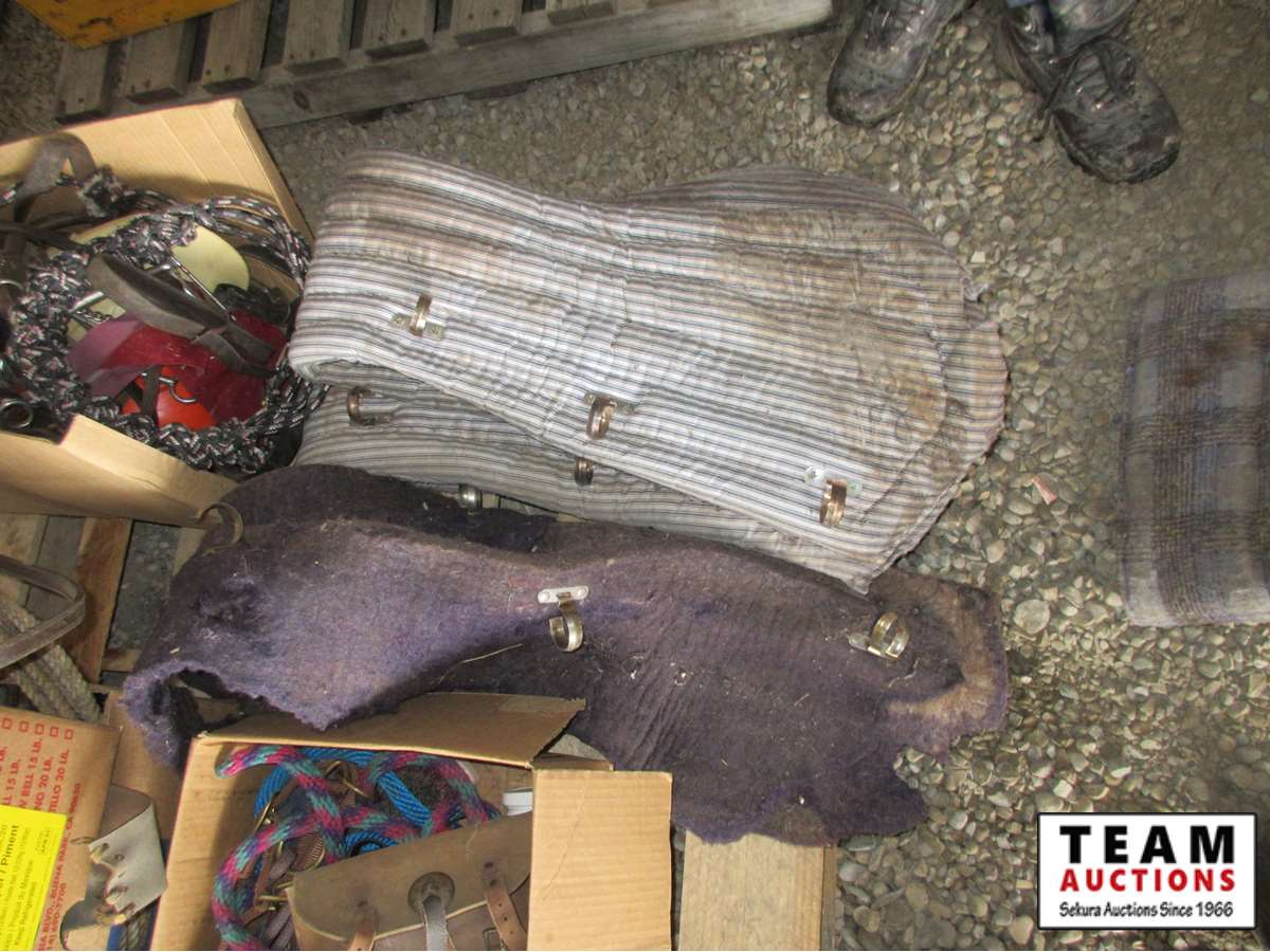 horse saddle pad, (4) horse collar pads, rope, saddle bags, misc tack
