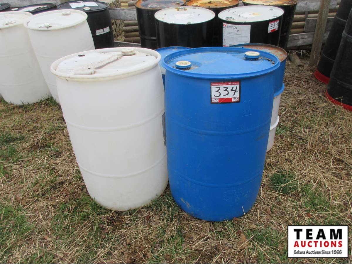334 (2) Metal Barrels & (2) Poly Barrels