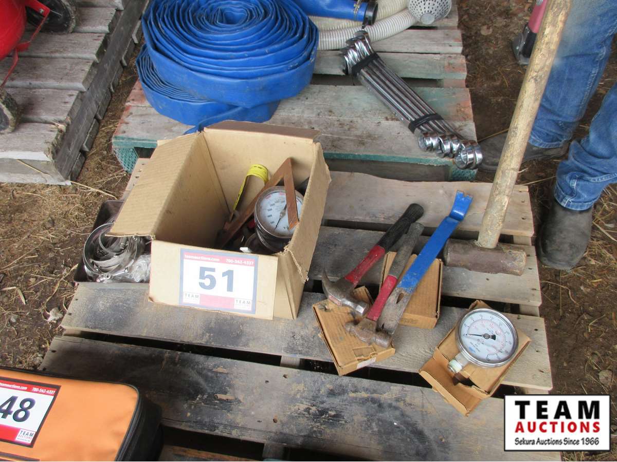 51 Carpentry Tools, Gauges, 8 lb Hammer, Hose Clamps