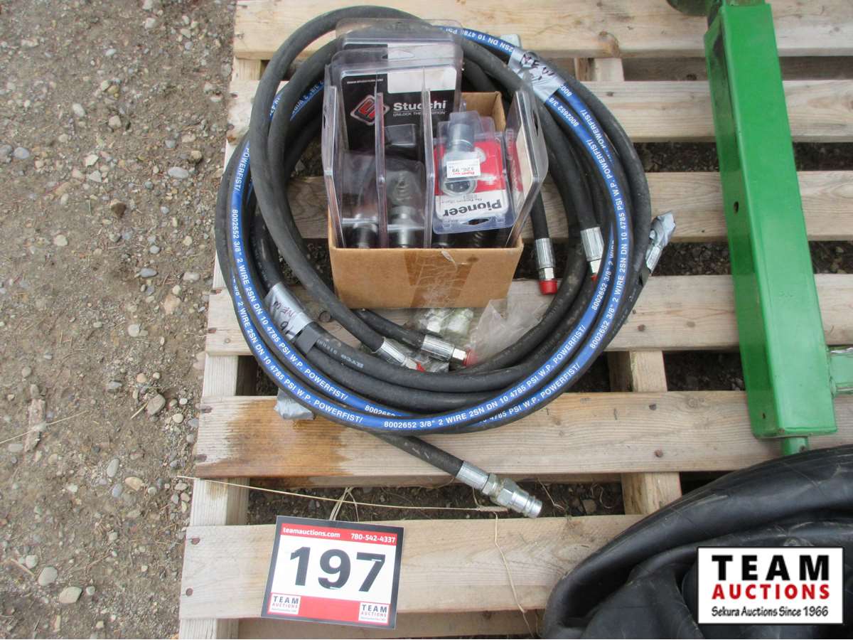 197 Hydraulic Hoses and Box of Pioneer Fittings