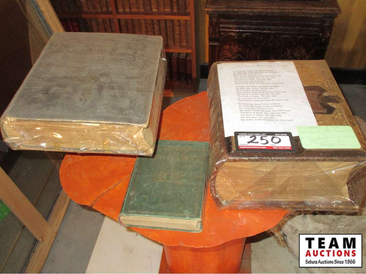 250 (3) Vintage Bibles with Stand