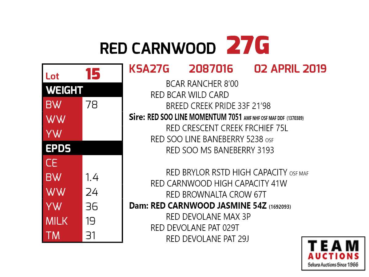 15 Red Carnwood 27G Angus Bull