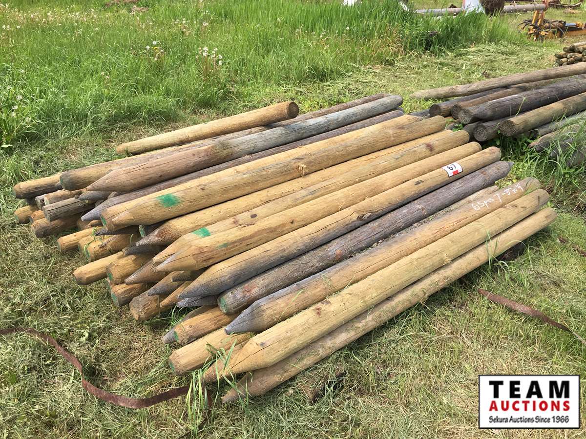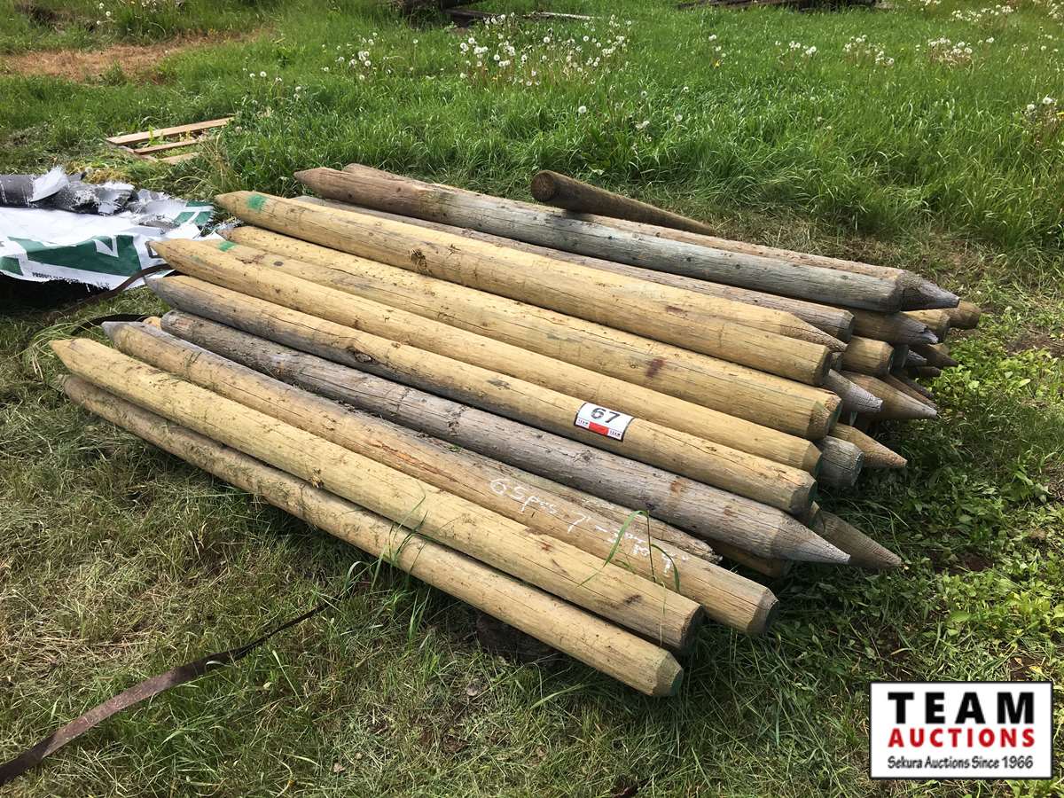 67 (65) +/- 7' Long, 3" to 4" P/T Fence Posts (unused)