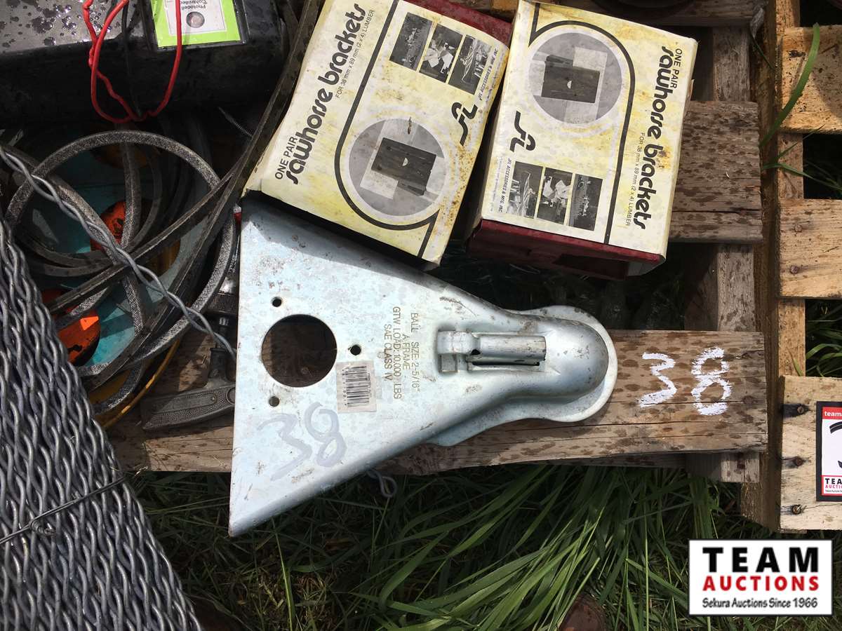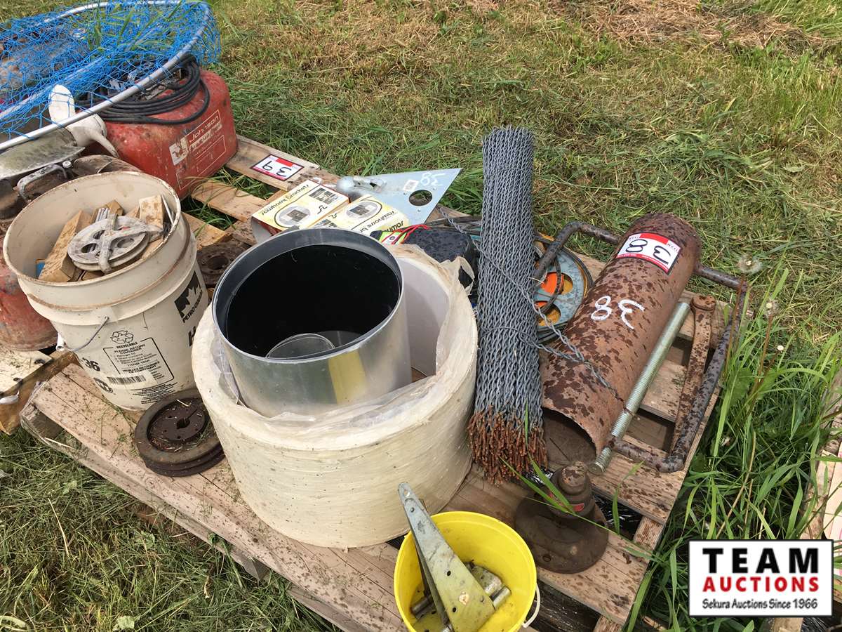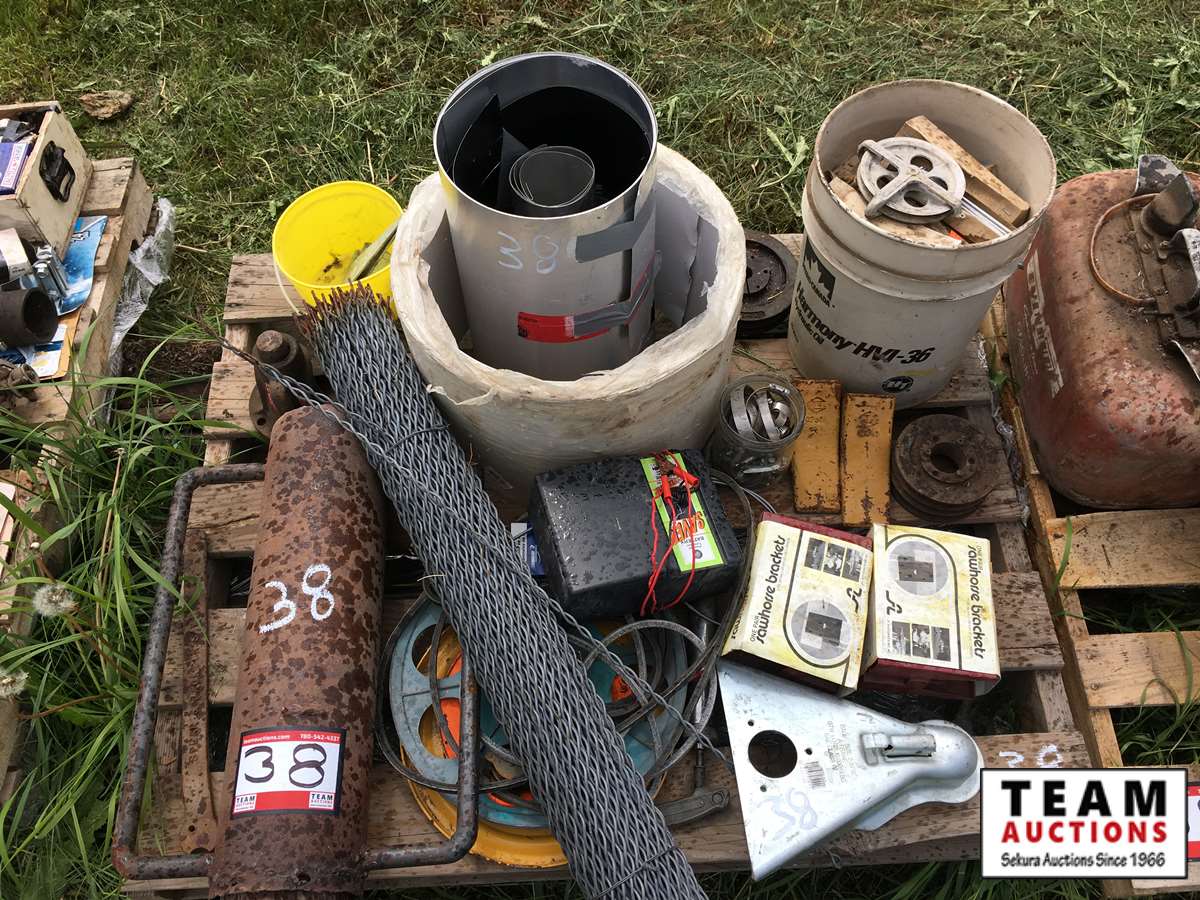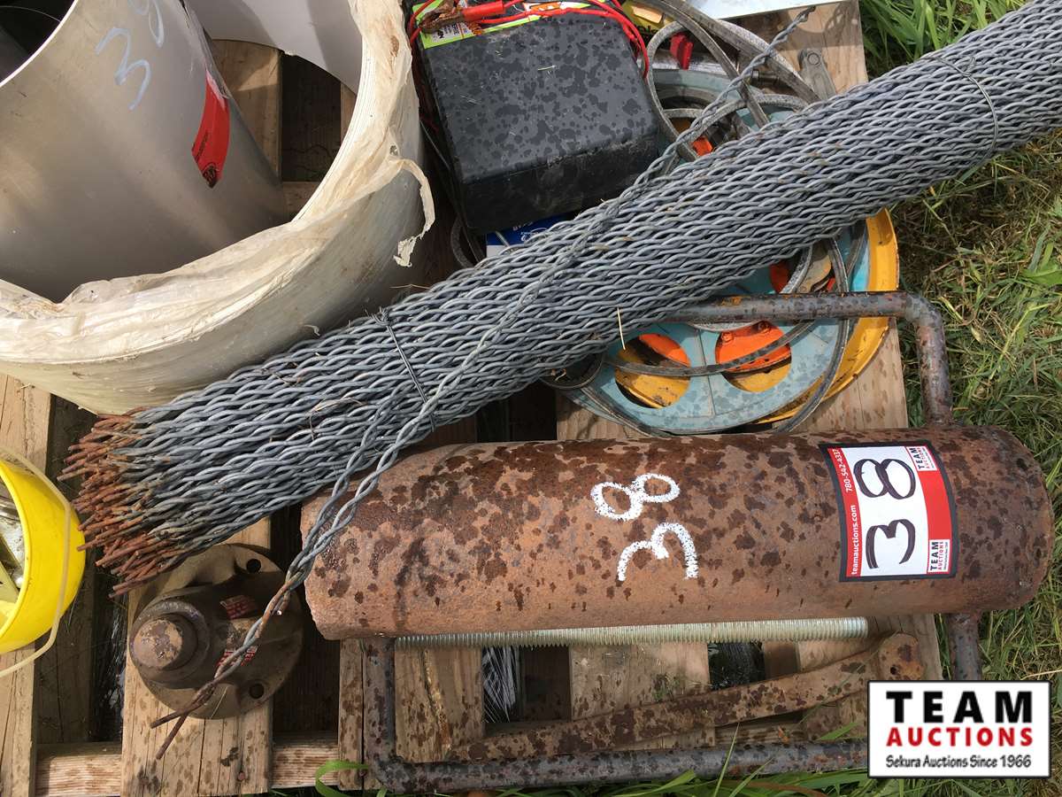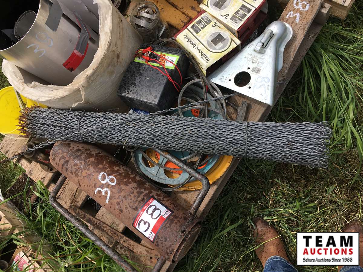 38 Pallet of Fence Stays, Post Pounder, Hitch, Cable Cutter, Flashing, Electric Fencer, etc