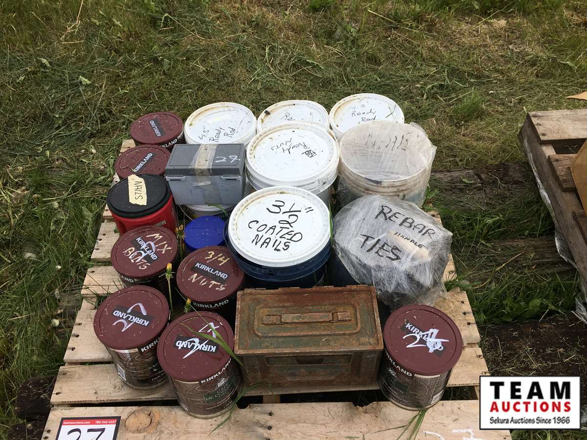 27 Pallet of Nails Nuts Bolts and Rebar Ties