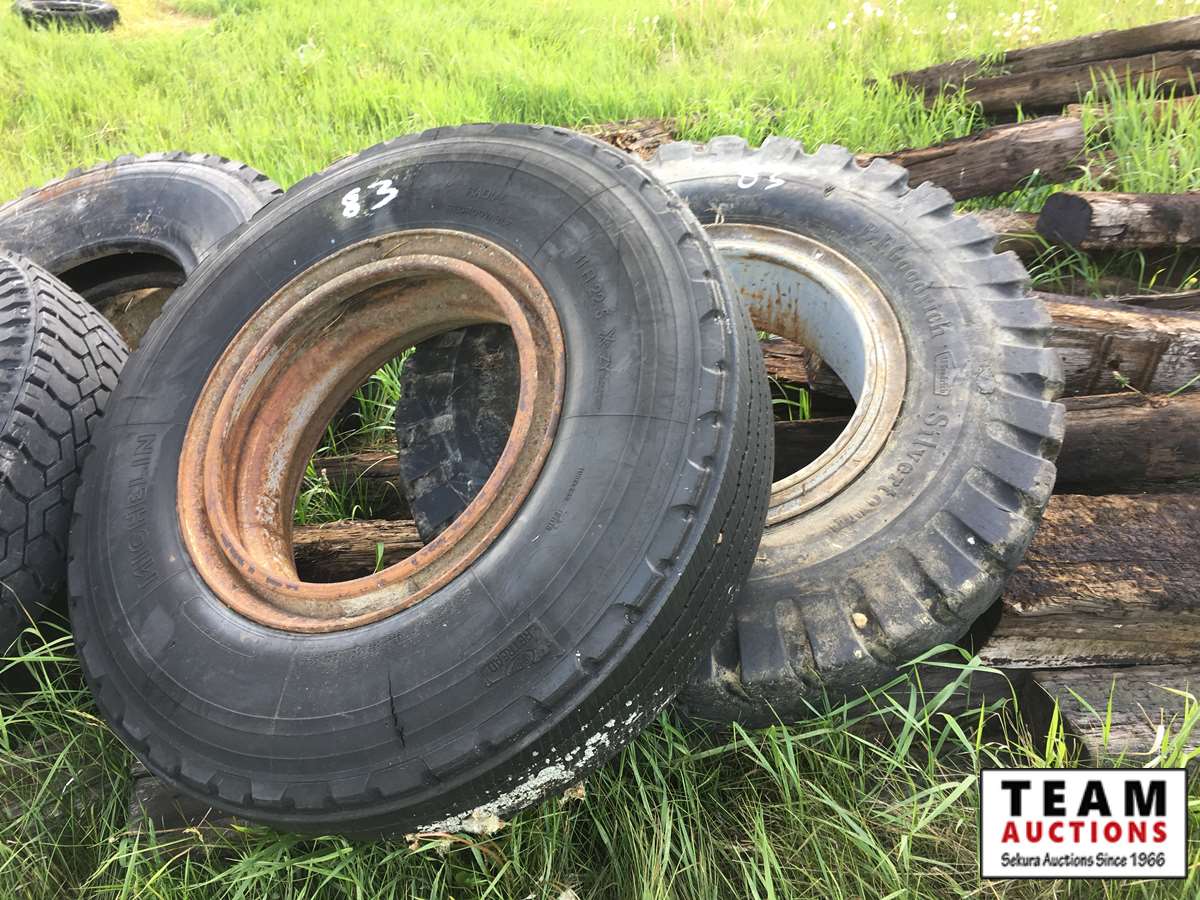 11.00 and 12.00R20 tires newer. The rest well used