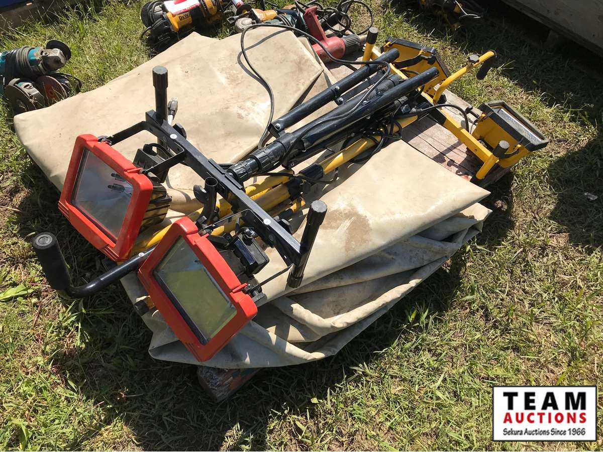 484 (2) Halogen Shop Light Stands & Tarp