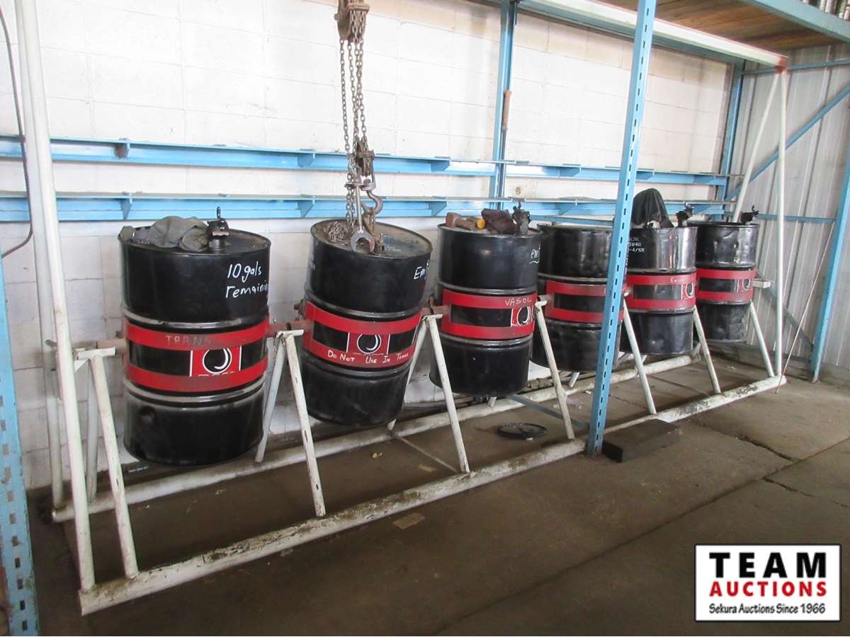 14 (6) Barrel Tilting Oil Stand with Overhead Hoist