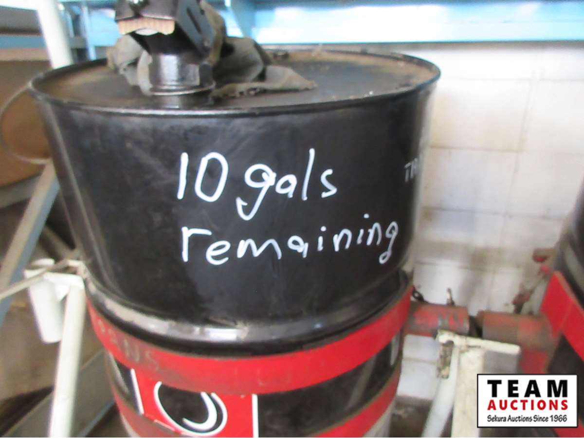 Barrel #1 15 gals 80/90 gear oil, #2 30 gals 15W40 motor oil, #3 20 gals long life antifreeze, # 4 & 5 empty, #6 10 gals automatic trans oil