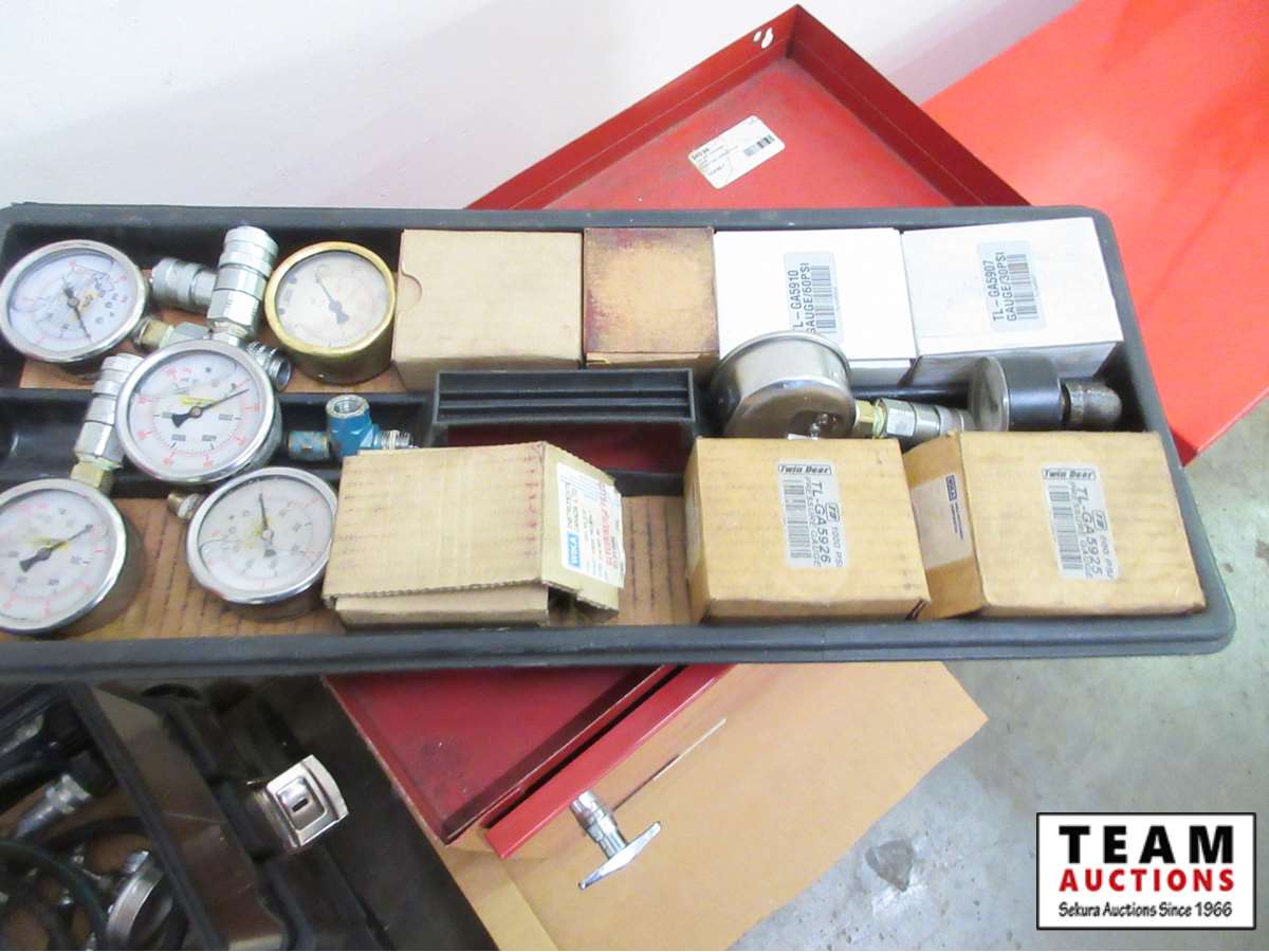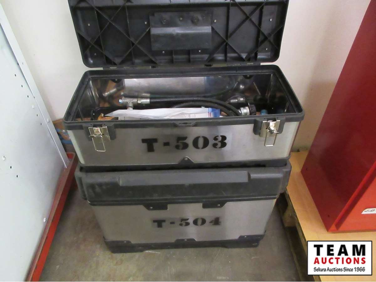 (2) tool boxes with hydraulic flow meter, test hoses & gauges