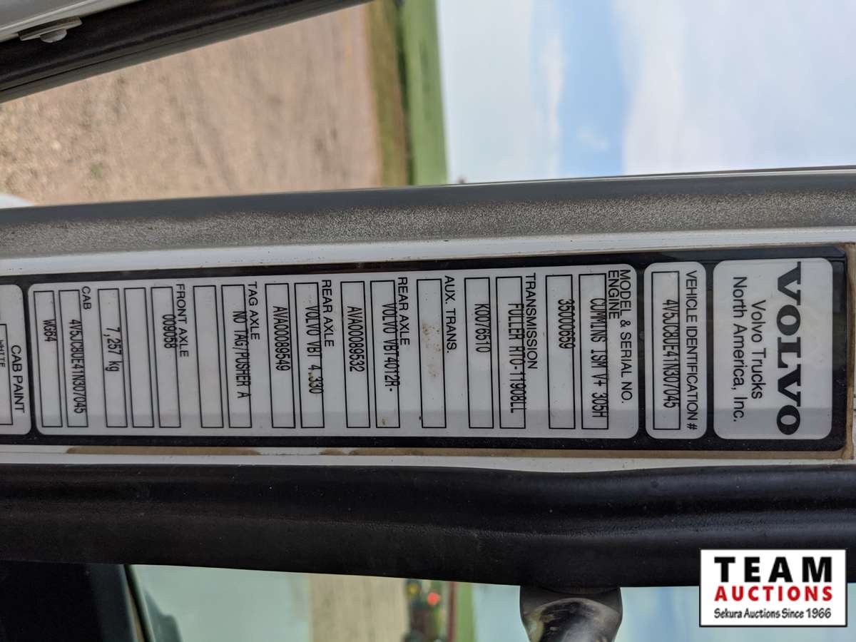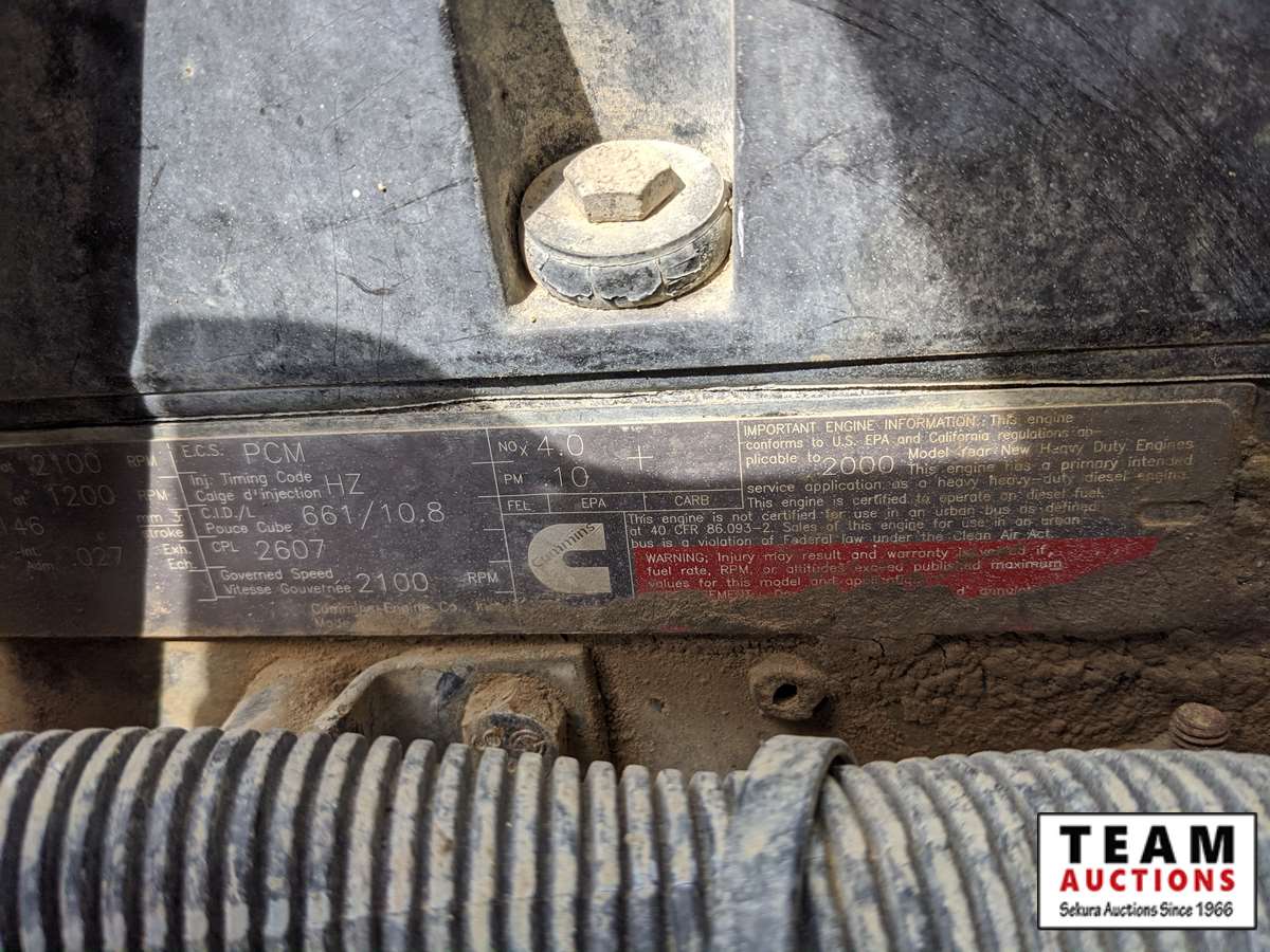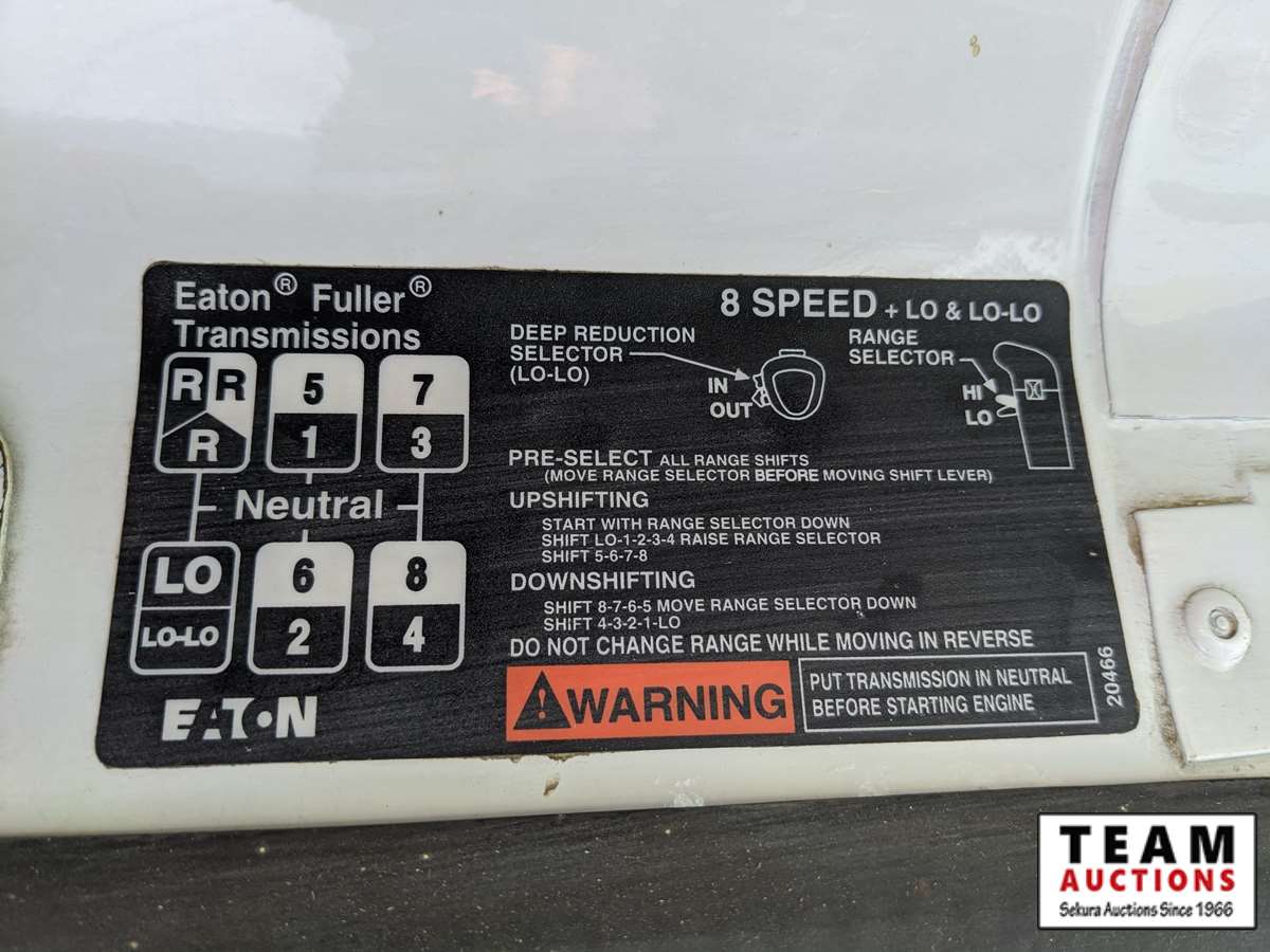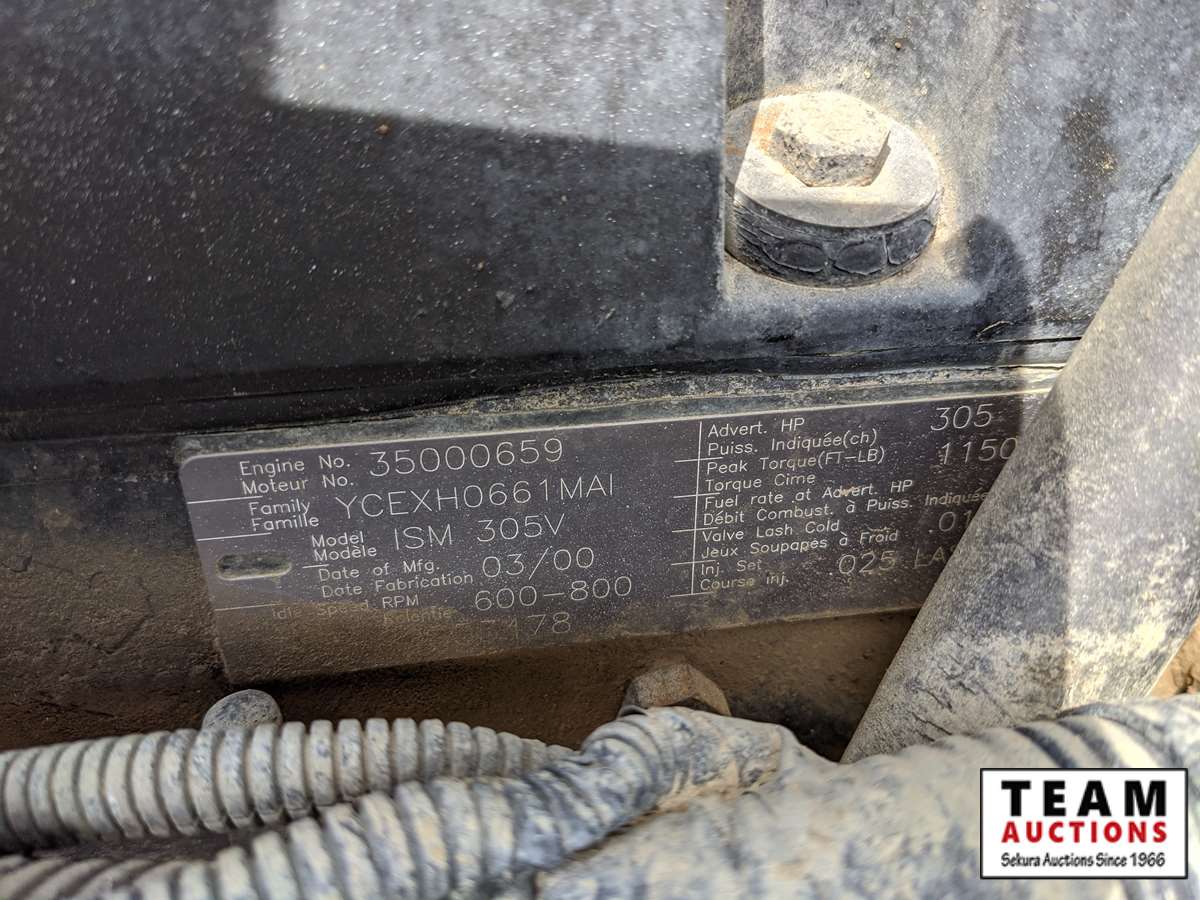 Cummins ISM305V, 305 HP, engine brake, Eaton Fuller 8LL speed, 16000 lb front, VBT4012E rears, 4.33 ratio, spring over walking beam suspension 425/65R22.5 F, 11R22.5 R
