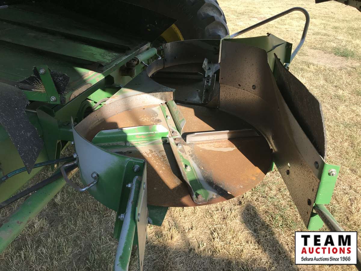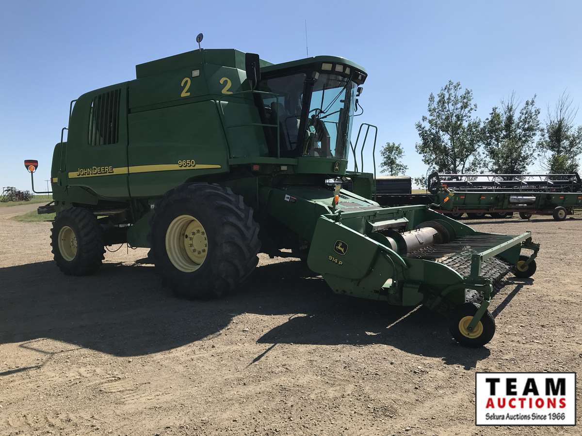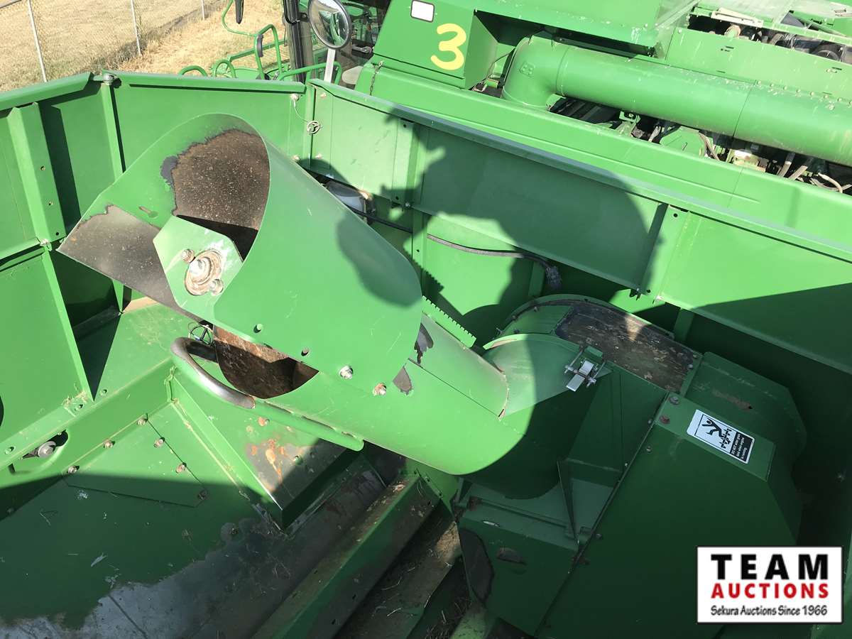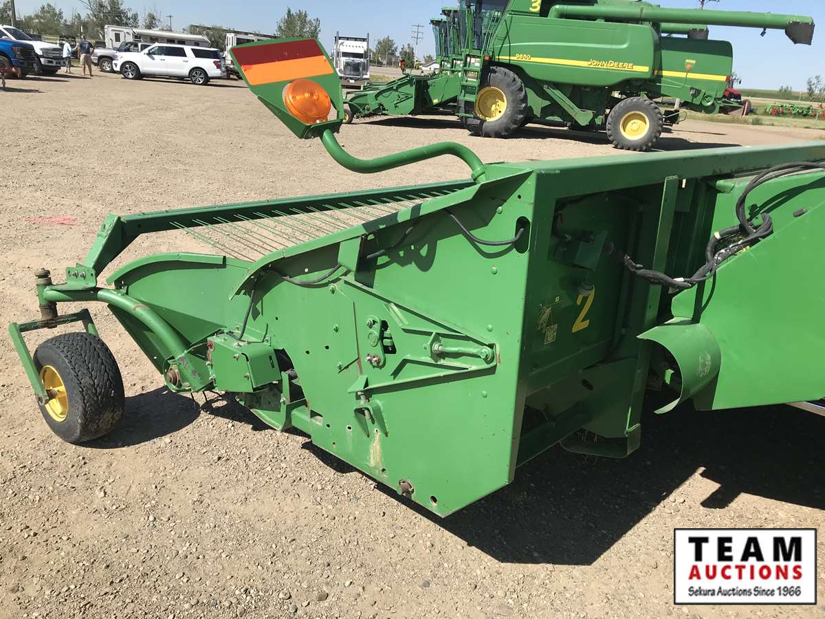 2003 914P pickup header s/n H00914W700365, reverser, VSR, auto HHC, F&A, 19 ft auger, chaff spreader, fine cut chopper, 800/65R32 F, 16.9R26 R, 5140 sep hrs showing, 6847 hrs