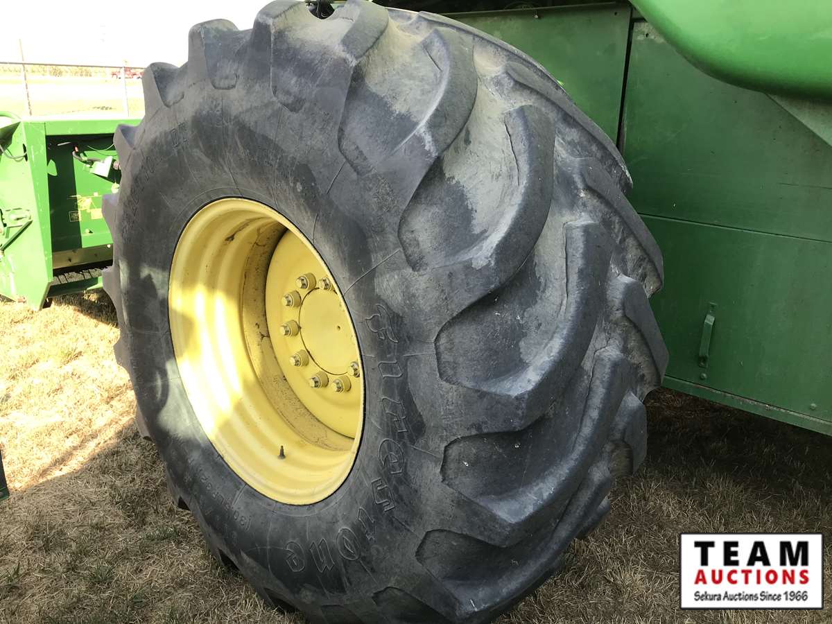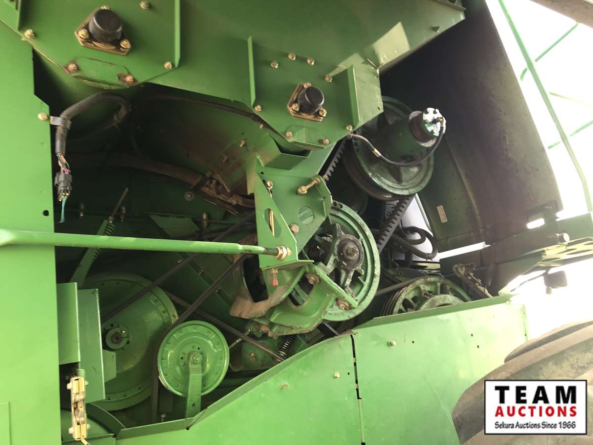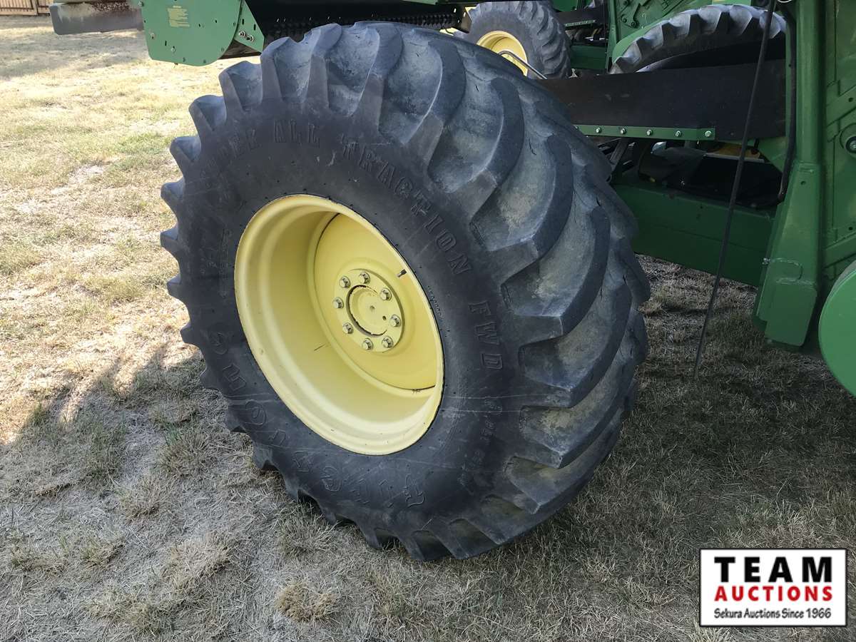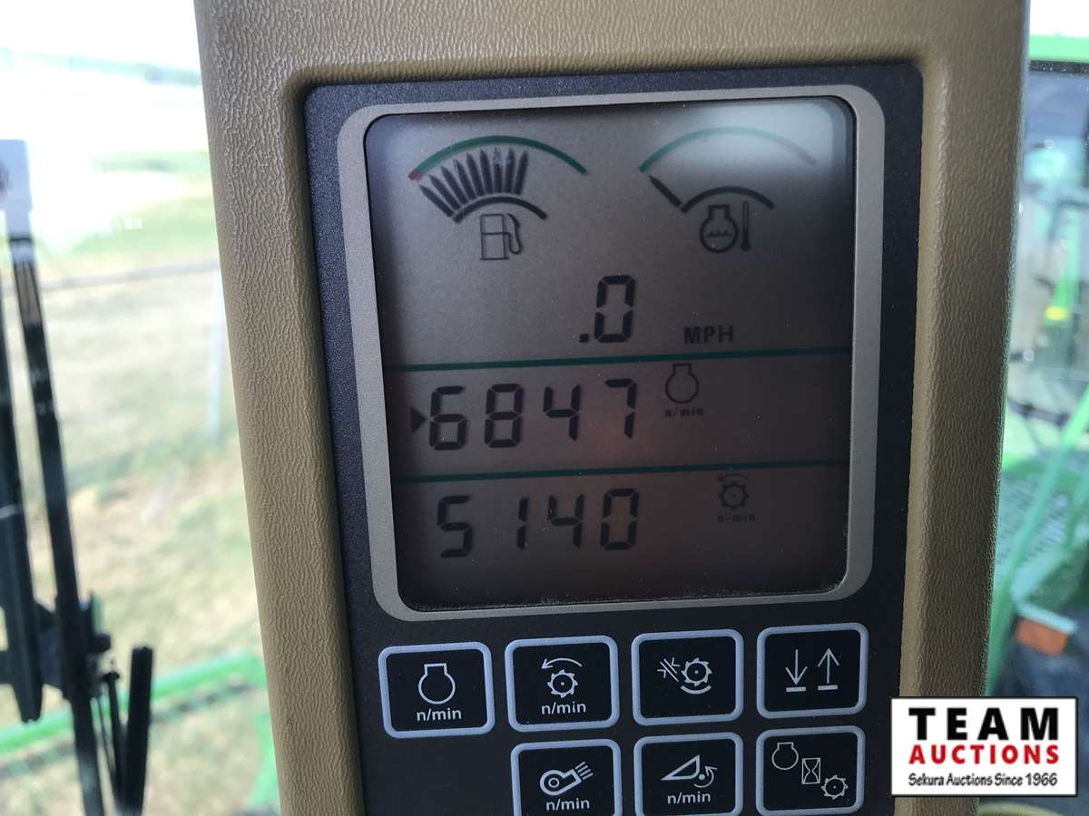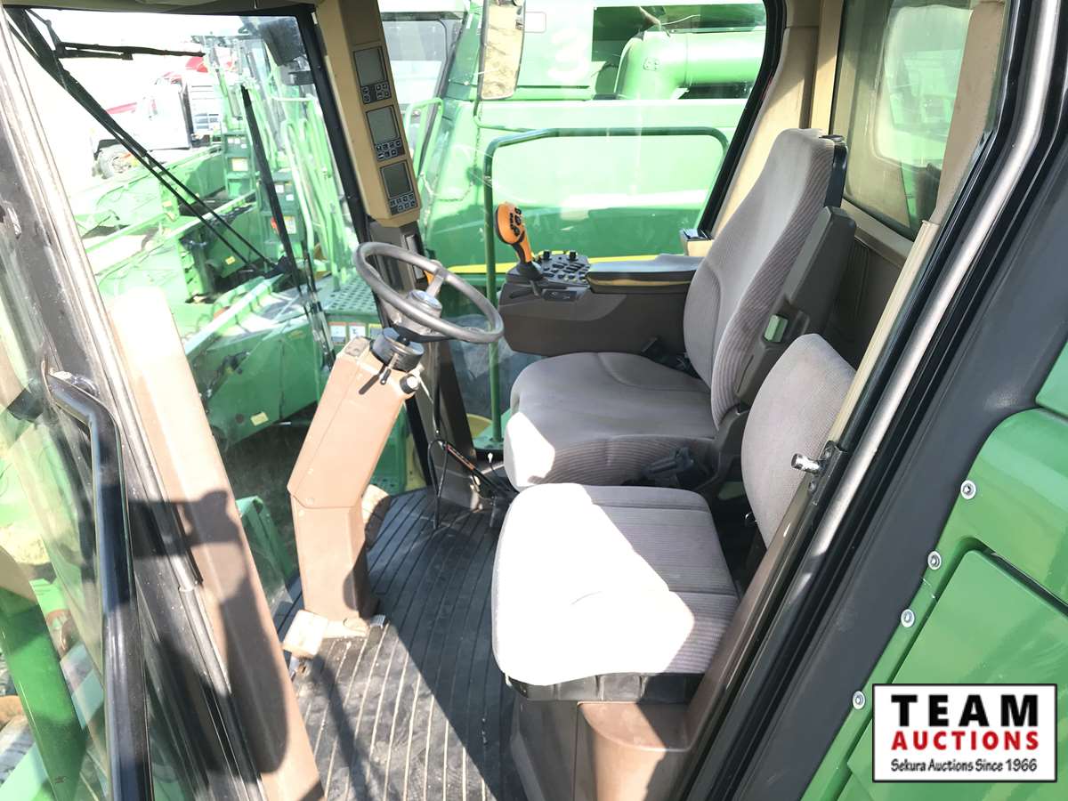 2003 914P pickup header s/n H00914W700365, reverser, VSR, auto HHC, F&A, 19 ft auger, chaff spreader, fine cut chopper, 800/65R32 F, 16.9R26 R, 5140 sep hrs showing, 6847 hrs