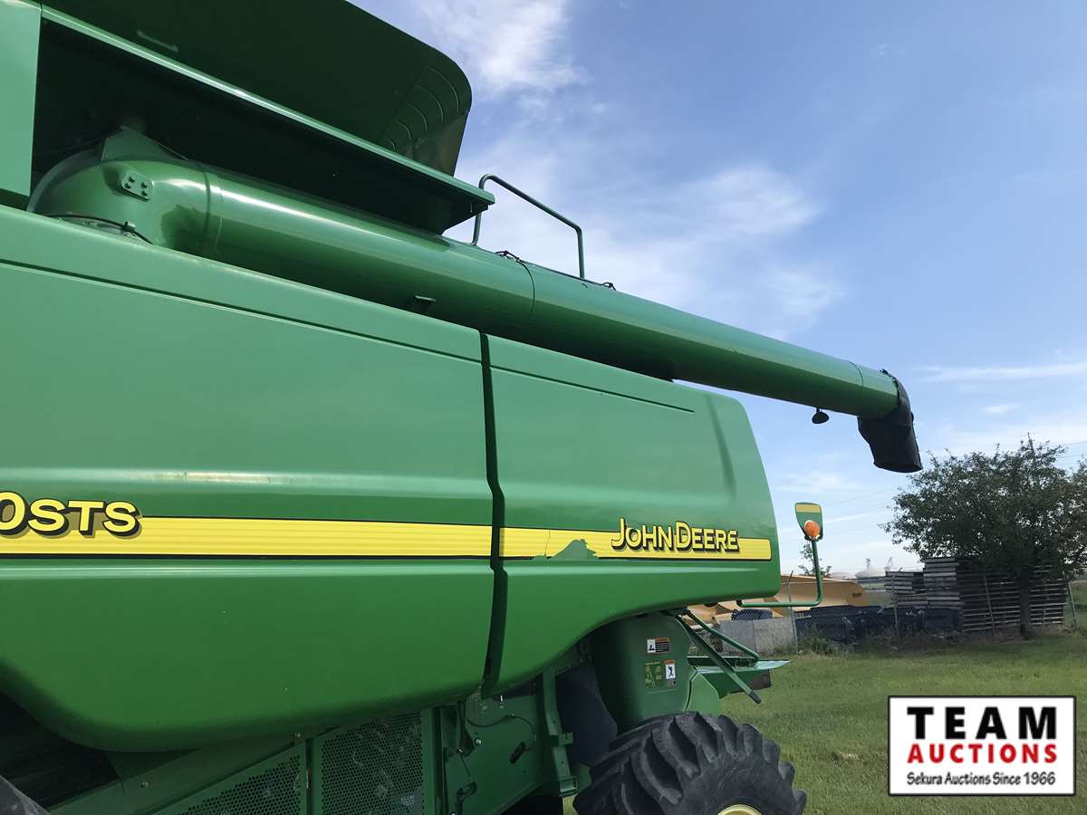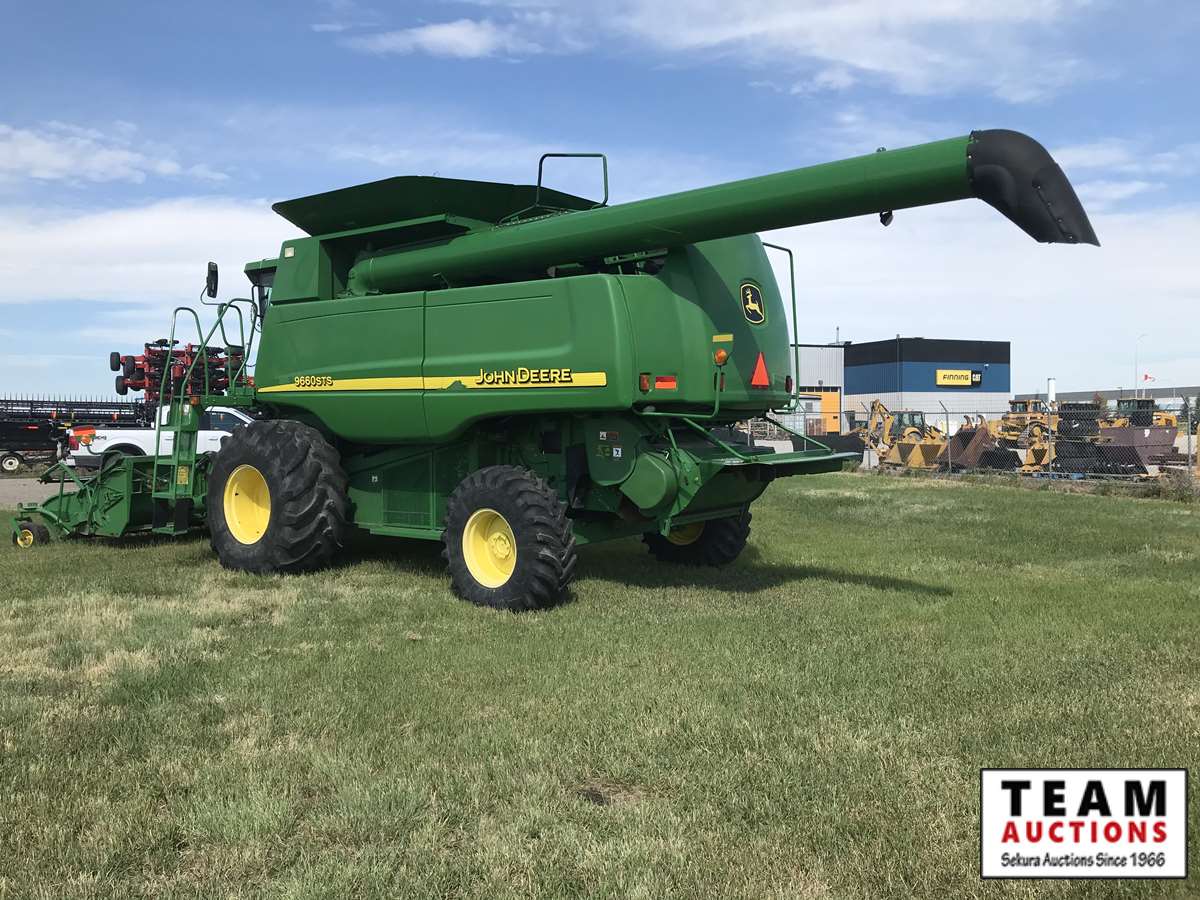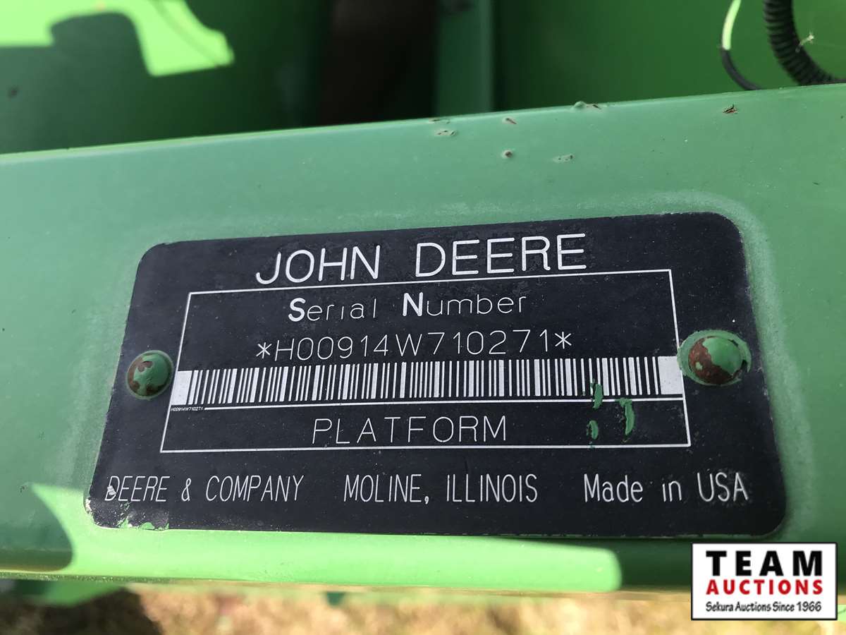 JD 914 P/U header, fine cut chopper, chaff spreader, yield & moisture, VSR, auto header height control, fore and aft, grain tank extensions, 3115 engine hrs, 2242 machine hrs