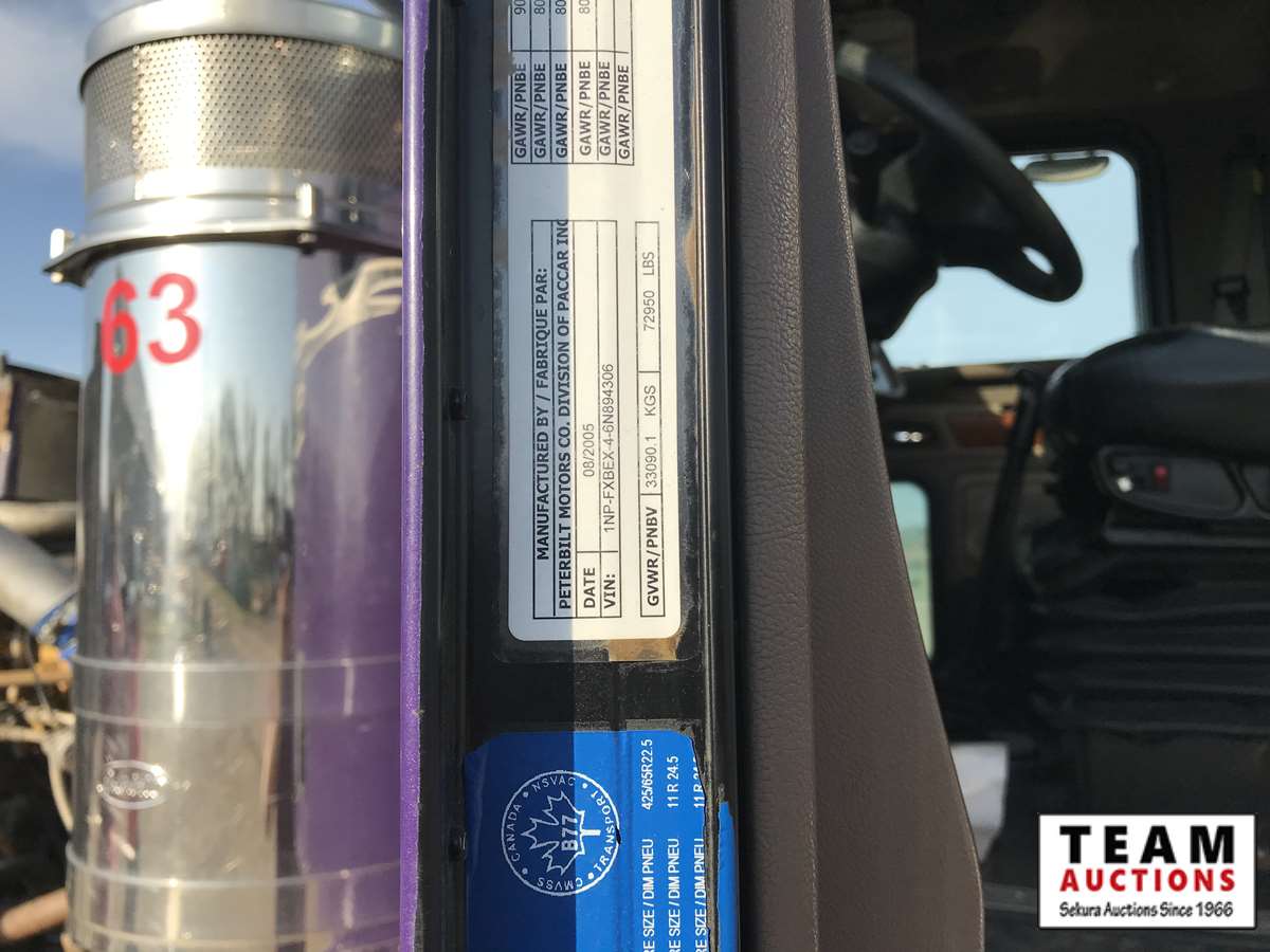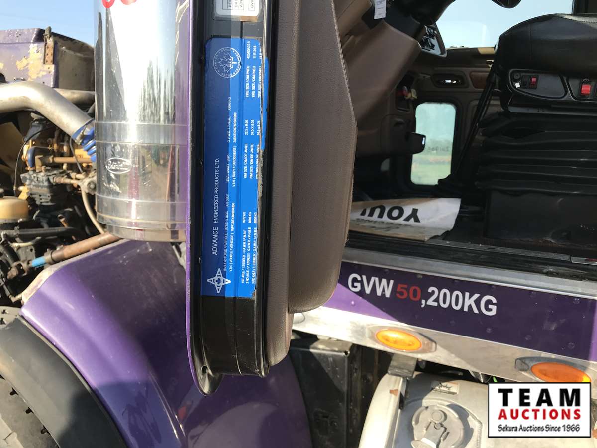 63" sleeper, Caterpillar C-15, eng brake, Eaton Fuller 18 speed trans, air ride suspension, 63 in. sleeper, 11R24.5 R, 425/65R22.5 F, alum wheels, Advance tank, hydraulic drive pump, heated cabinet, plumbed for pup, AB CVIP , AB registered, 768,641kms showing, 20,434 engine hrs