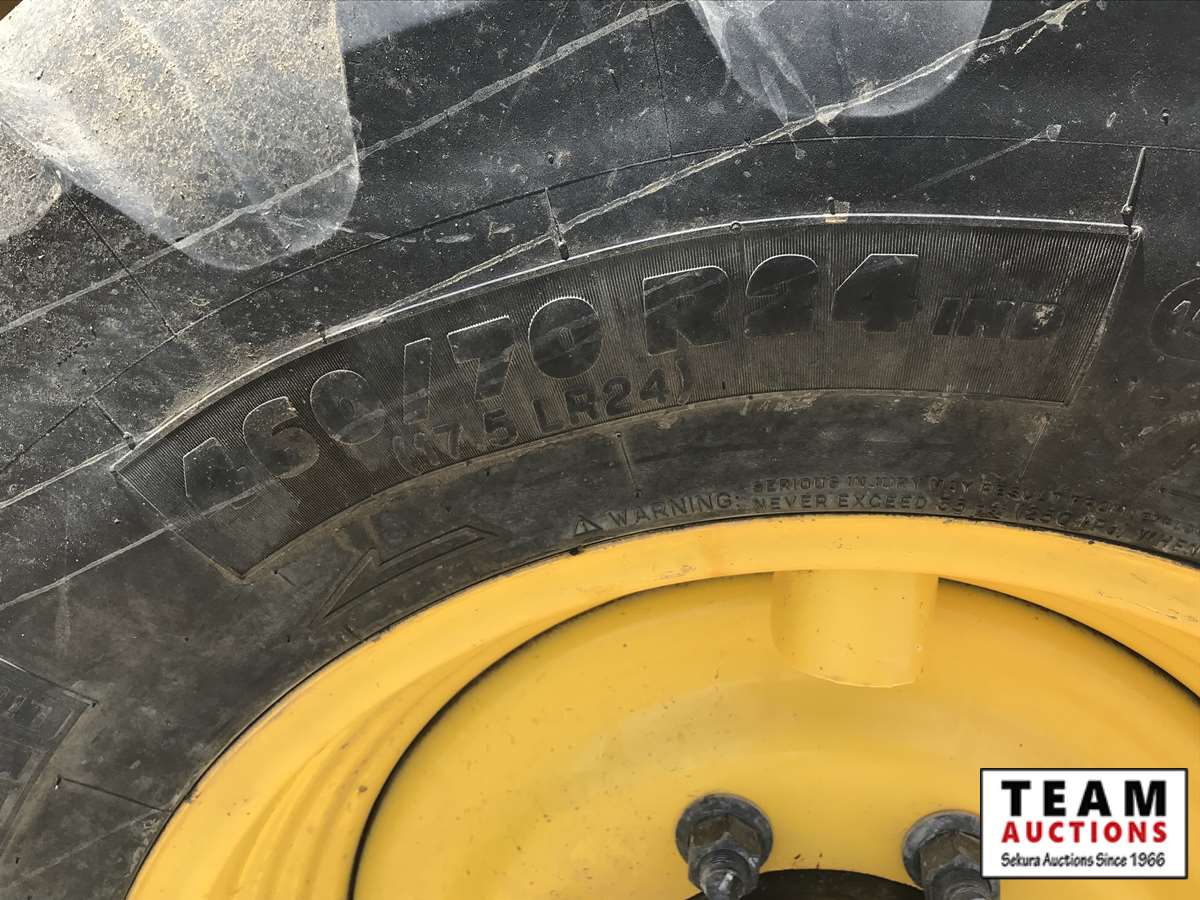 Perkins 4 cyl, Q/C forks, aux hydraulic, cab, hydraulic leveling, 17.5x24