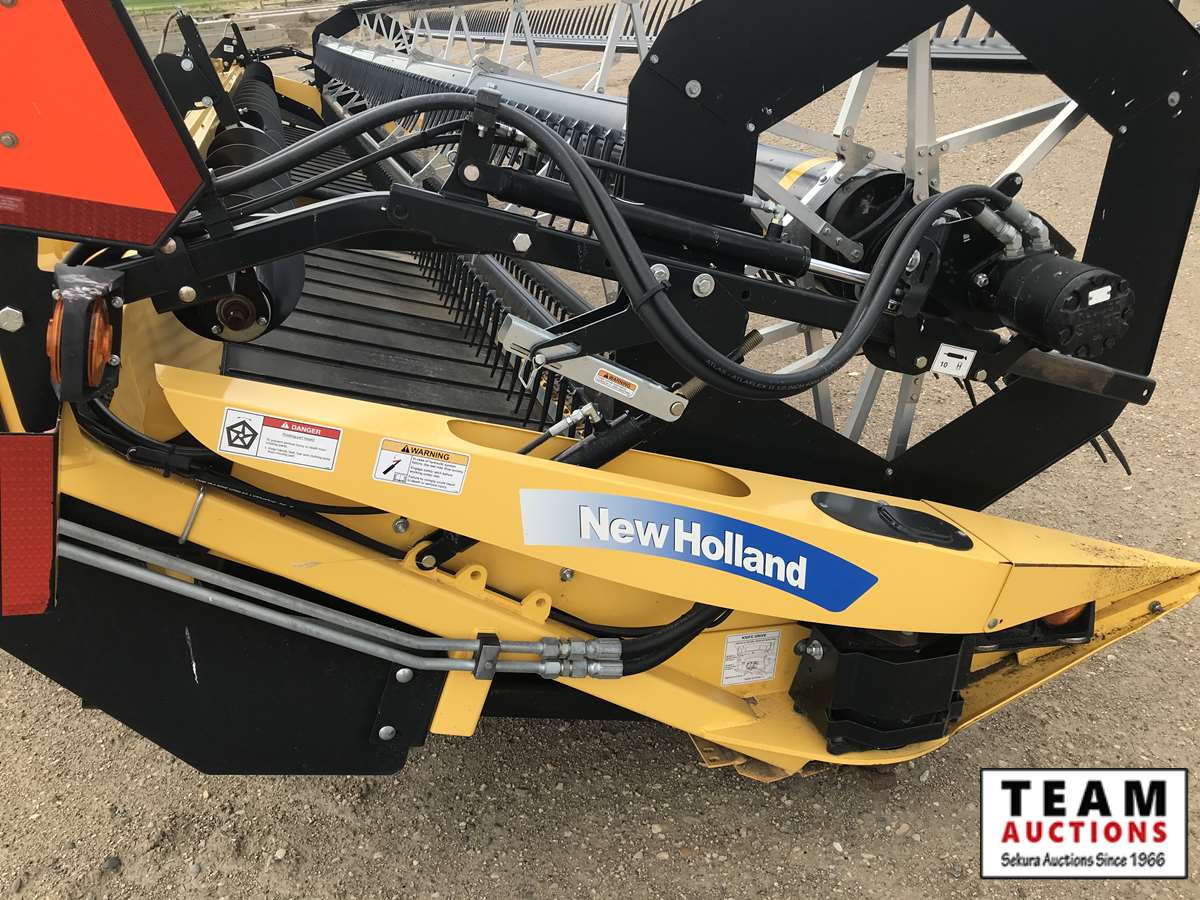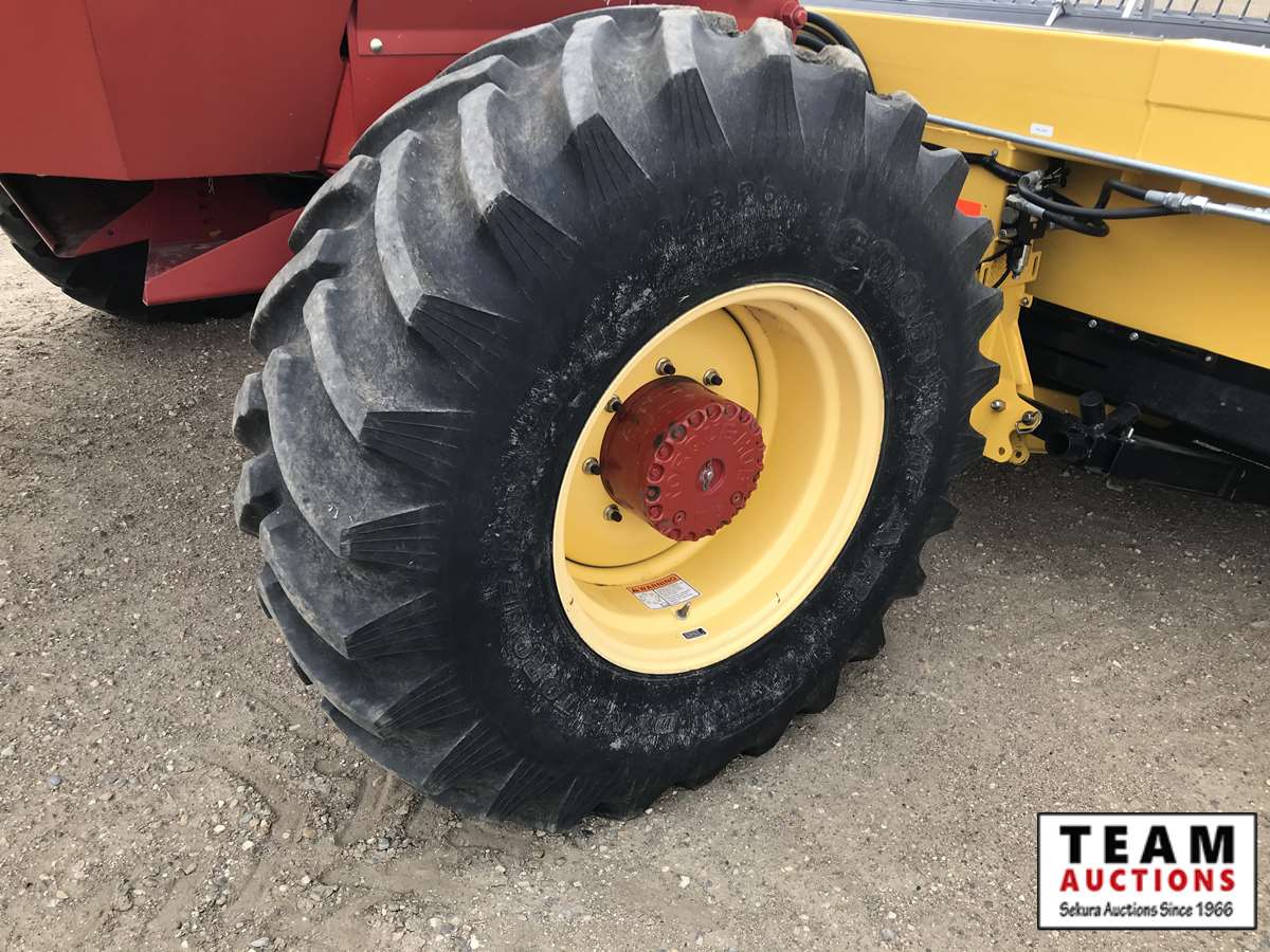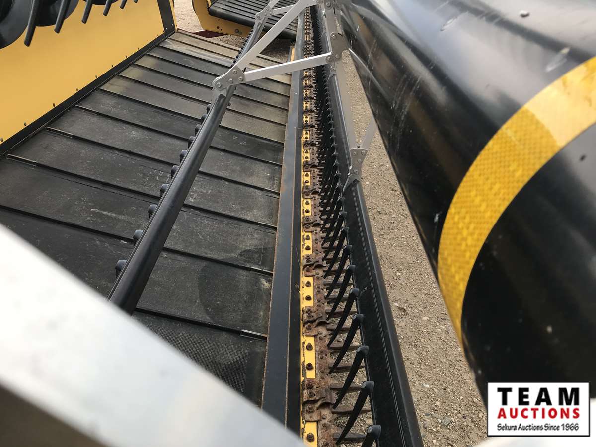 HB36 header, s/n 36WS115547, cross auger, p/u reel, hydraulic fore/aft, dbl knife drive, tapered poly swath roller, 18.4R26 F, 14L-16.1SL R, 357 hrs