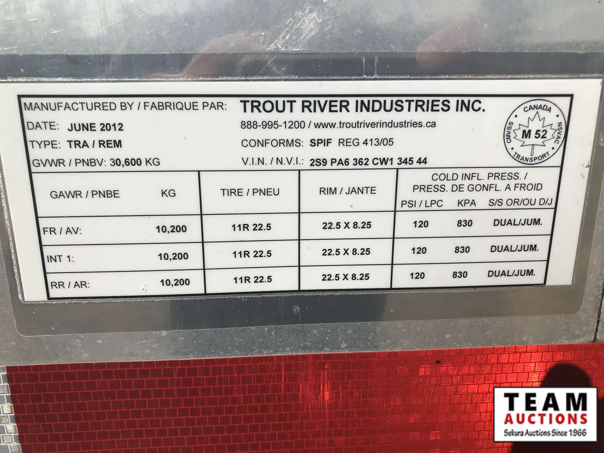 189 2012 Trout River 38' Tridem Shuttle Floor Trailer