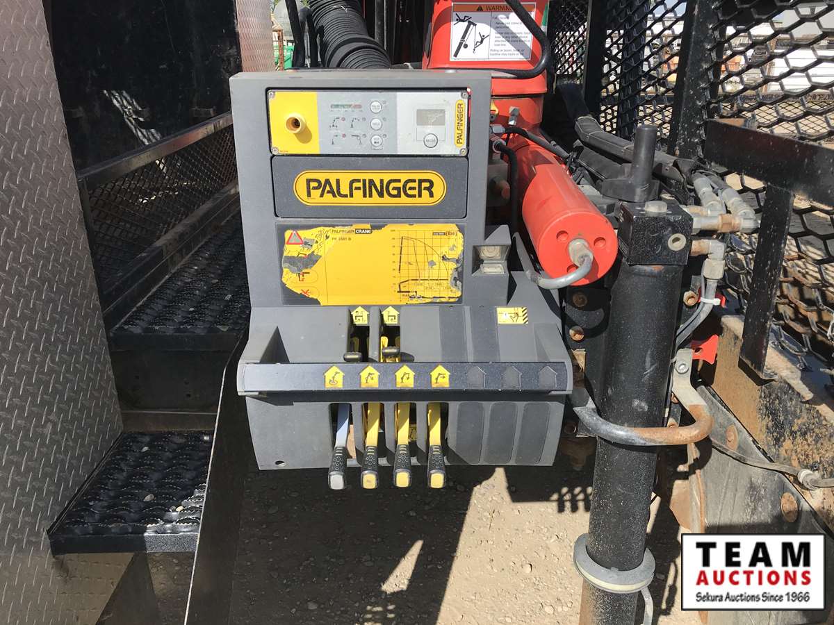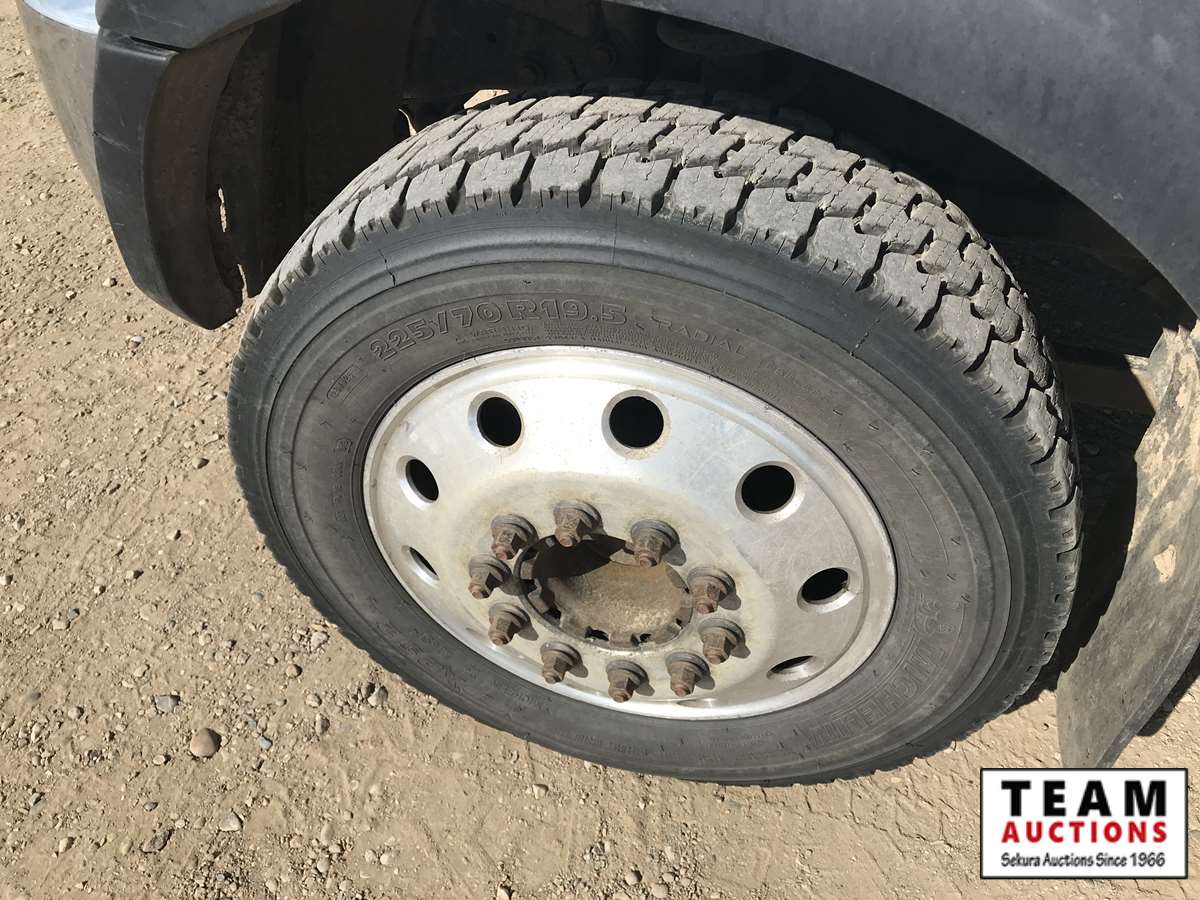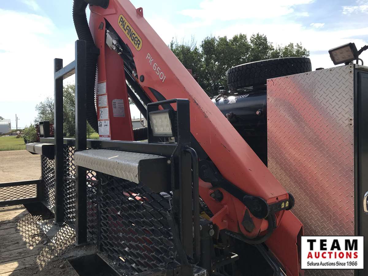6.7 L, diesel, A/T, 6 ft bed, folding boom, dual ctrls, hydraulic outriggers, PAS, Vmac air compressor, 225/70R19.5, AB CVIP 09/2020, 204,018 kms