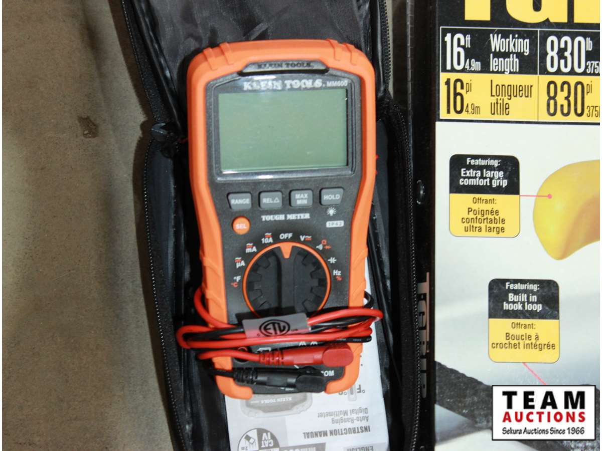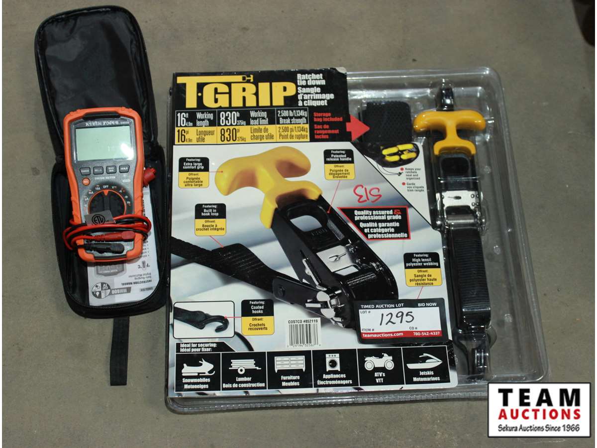 T-grip ratchet tie downs and Klein tools digital multimeter