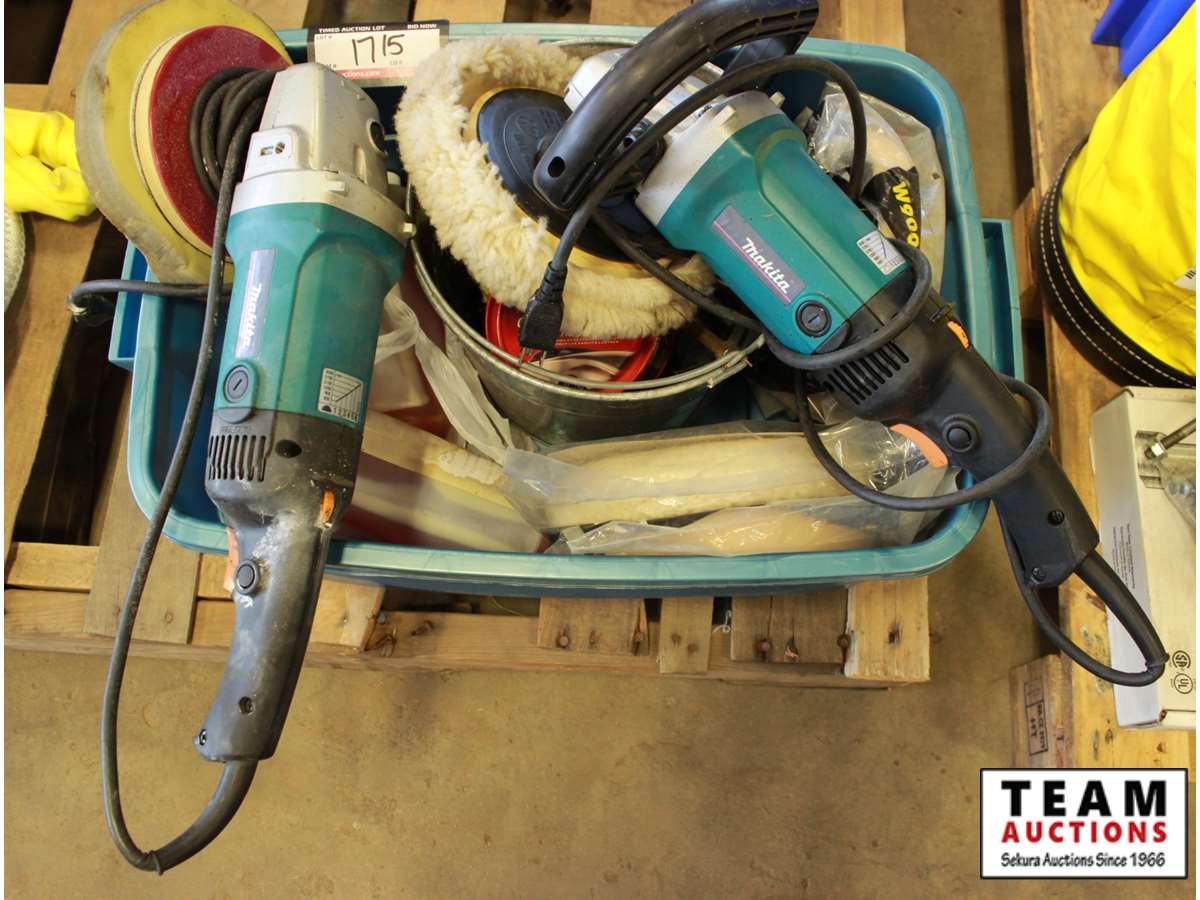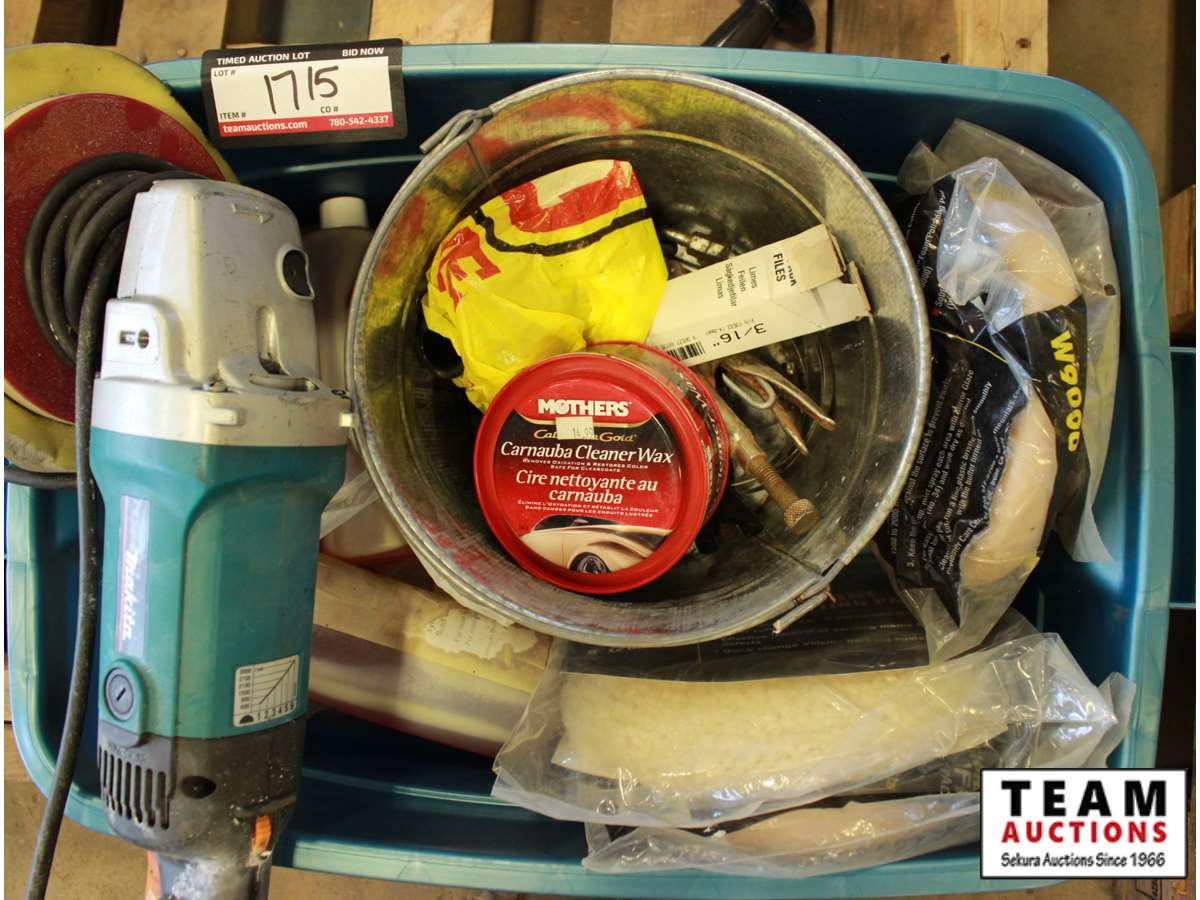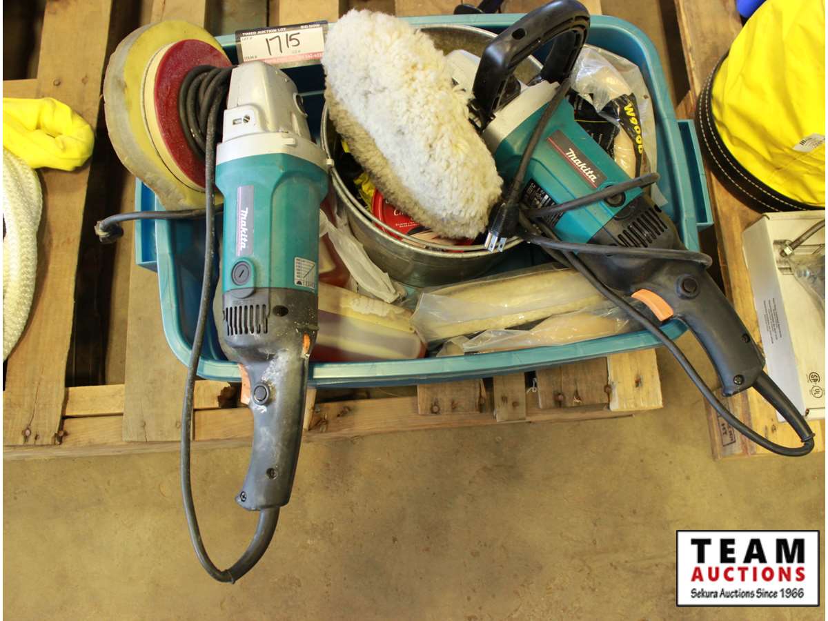 tow rope length unknown, Makita buffers, bucket w/carnauba cleaner wax, extra buffing pads