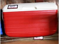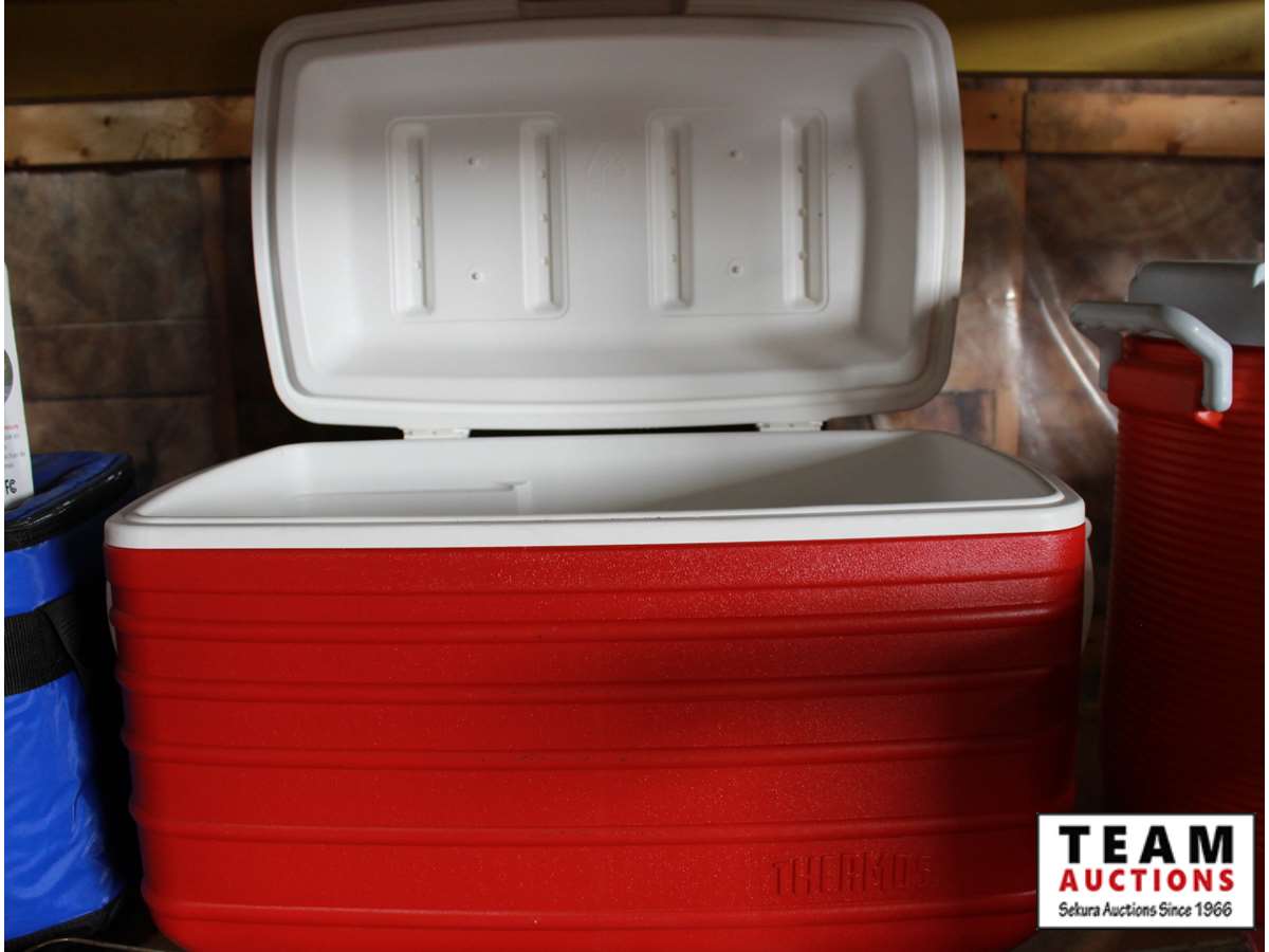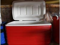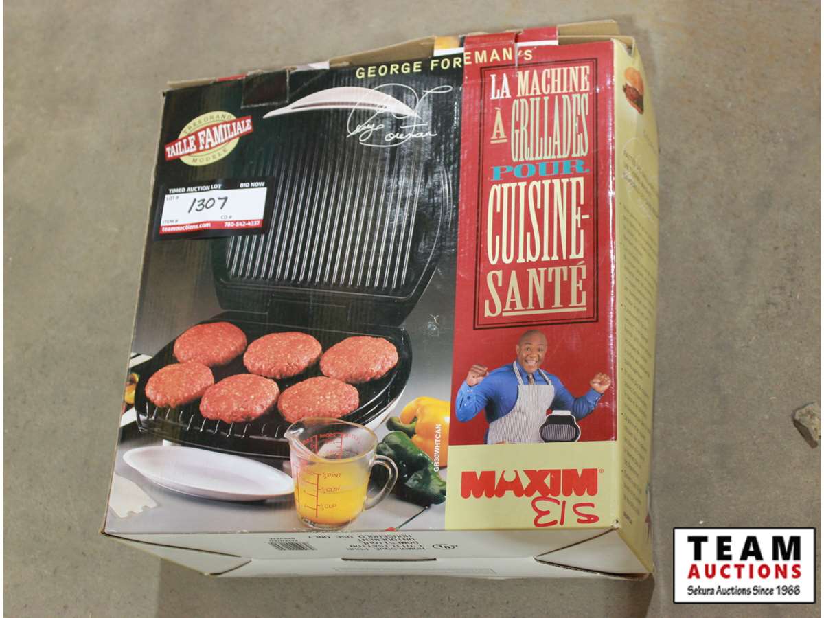 family size large Lean Mean Fat Grilling Machine by George Foreman, Fire grilling rods, red and white Thermos cooler