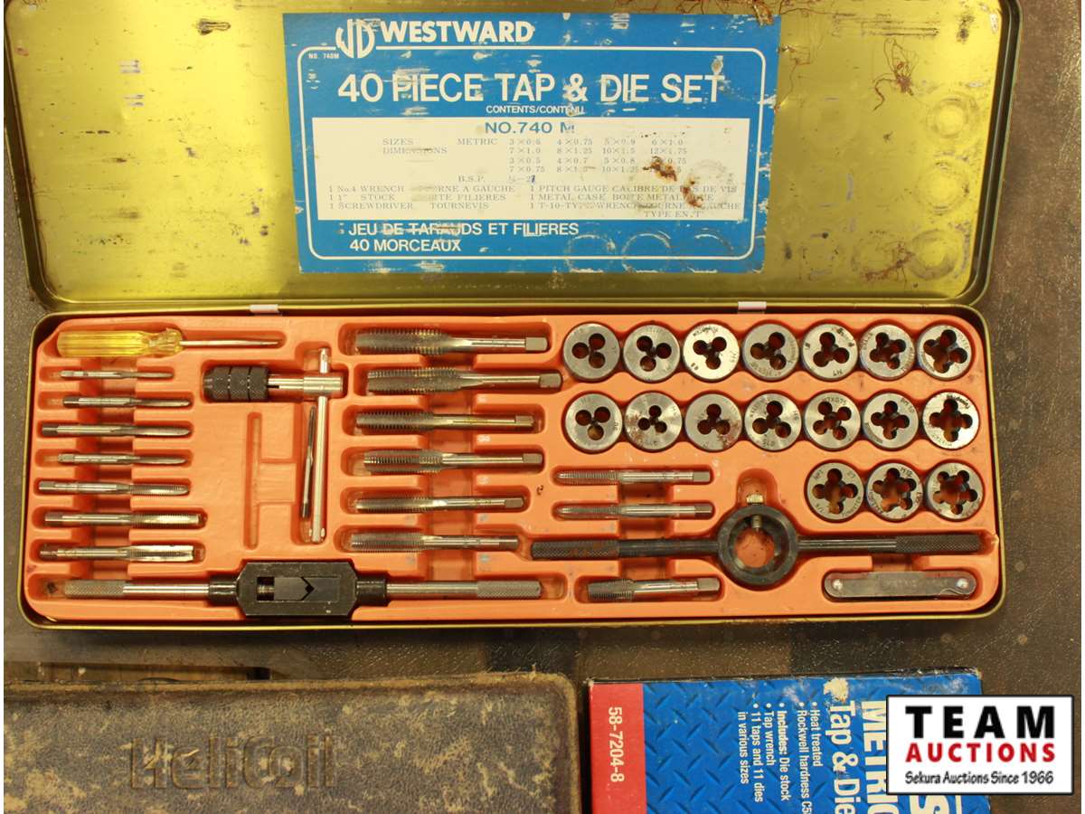 Mastercraft metric die tap set, Helicoil Master thread repair set, Westward 40-piece tap die set