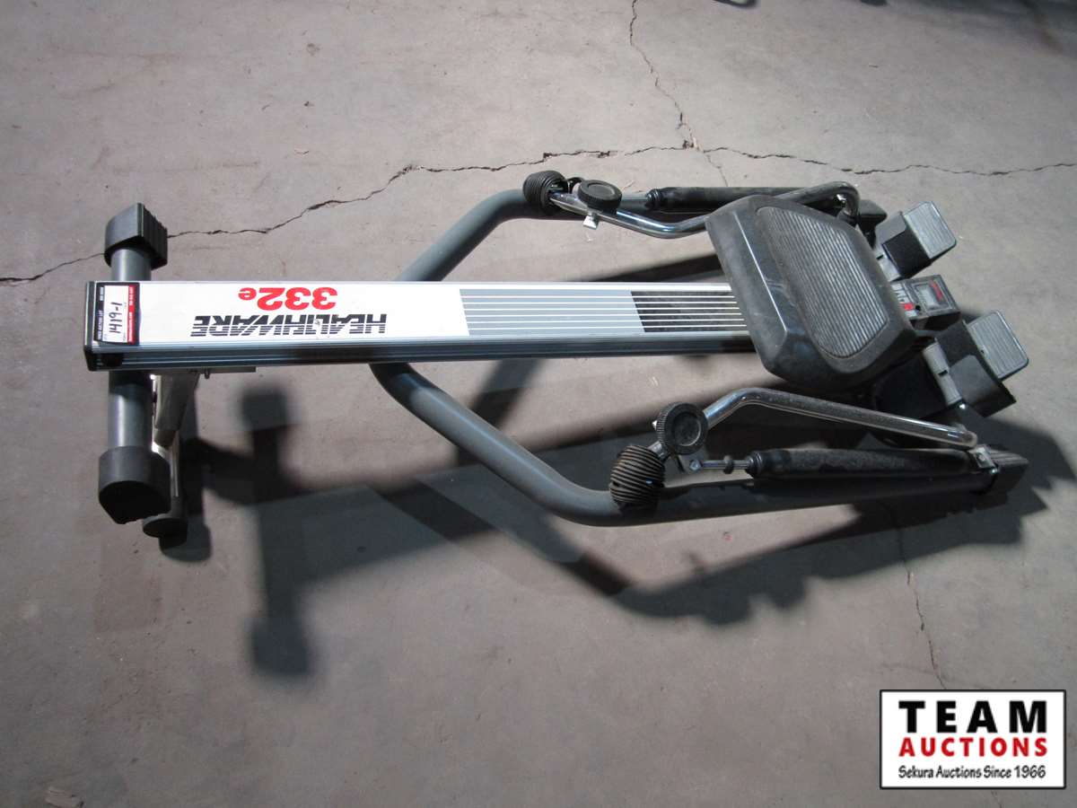 exercise machine Nordic Track, rowing machine Healthware 332e, black rubber exercise matt