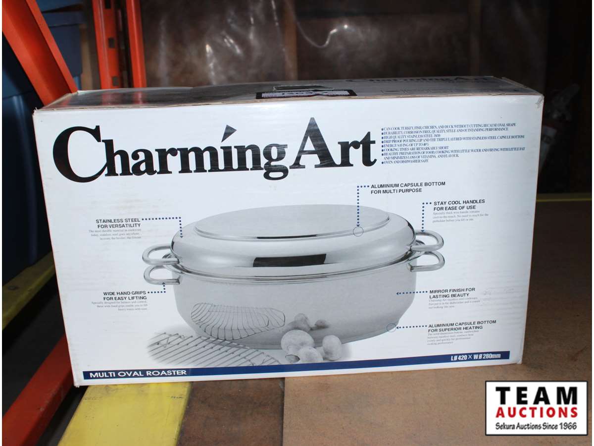 Charming Art multi oval roaster, Lean Mean Fat Grilling Machine by George Foreman, 10.5 quart aluminum pot set with strainer basket