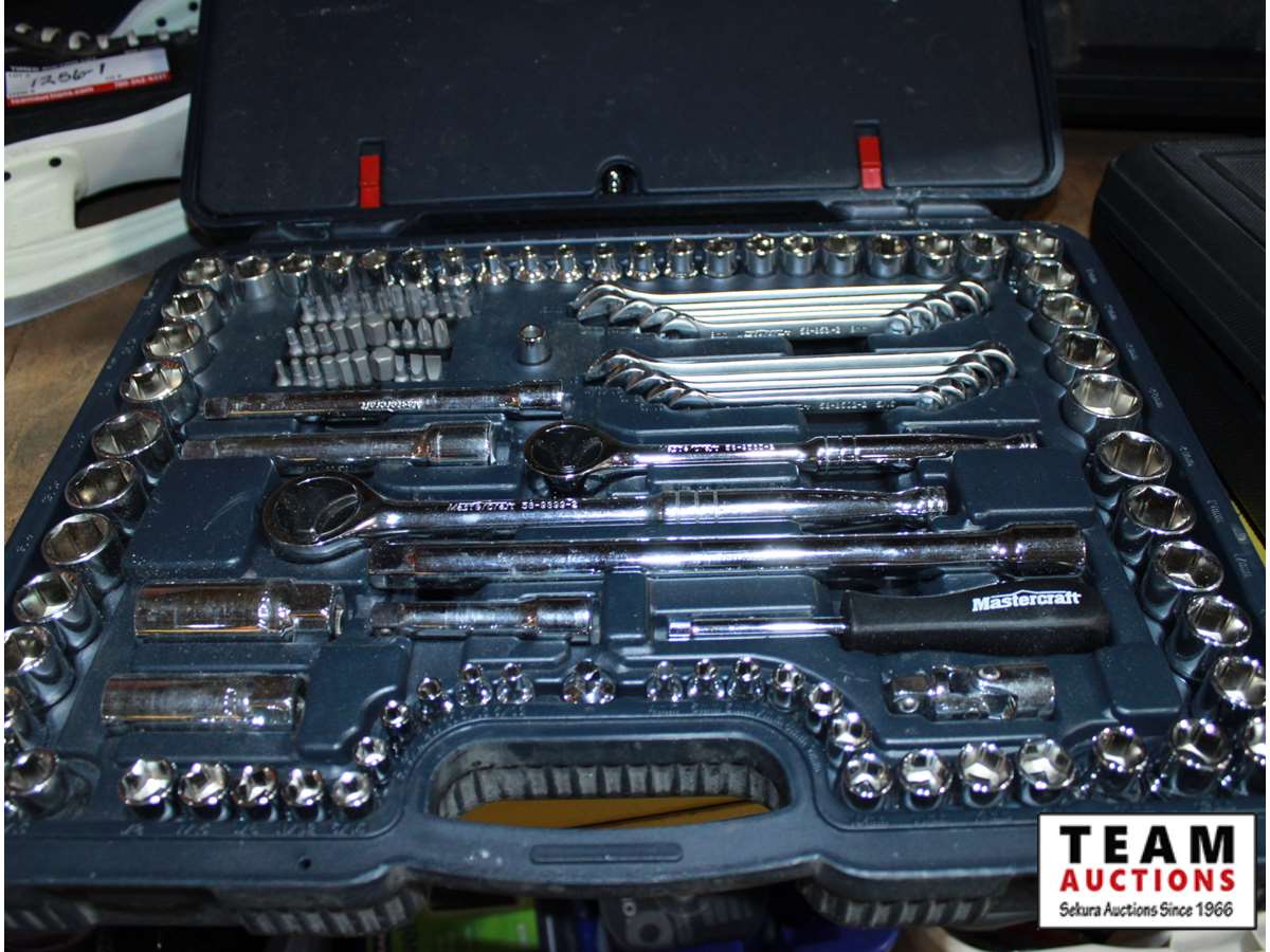 Mastercraft socket set, Samoa Dremel tool, cordless drill and flashlight 18 volt