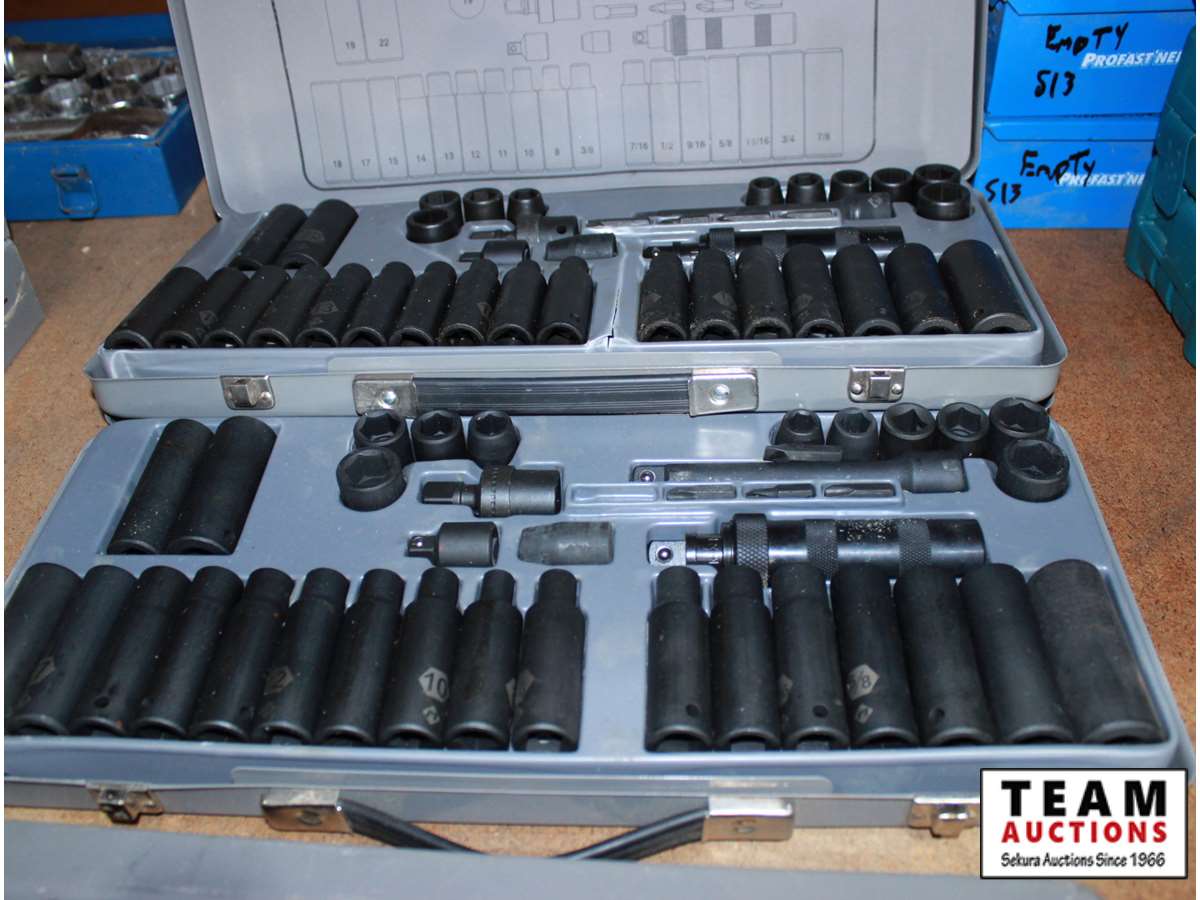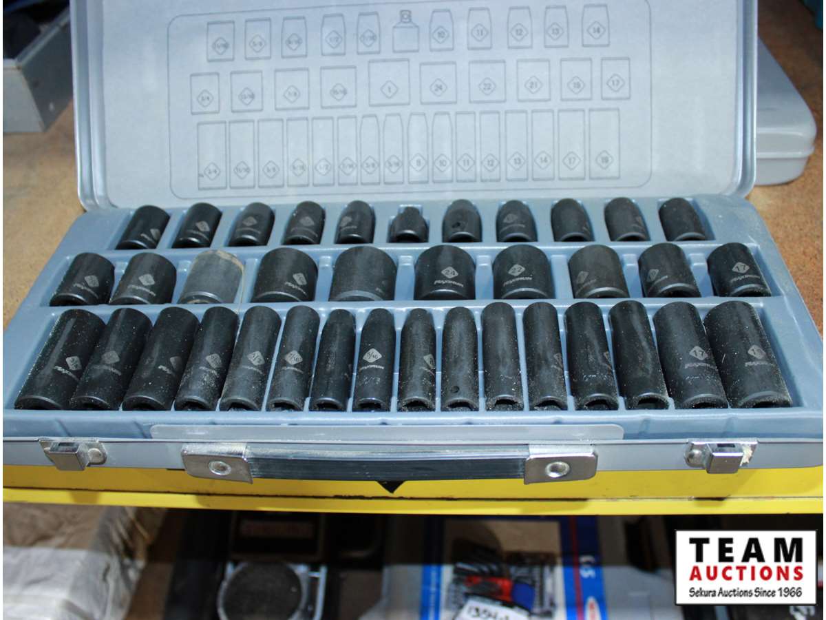 Mastercraft Maximum socket sets; (1) 3/8 inch drive standard and metric impact socket set, (2) 1/2 inch drive standard and metric impact socket sets, Rigid snake camera