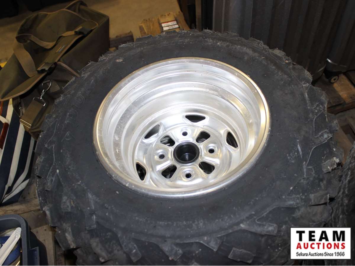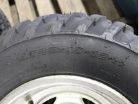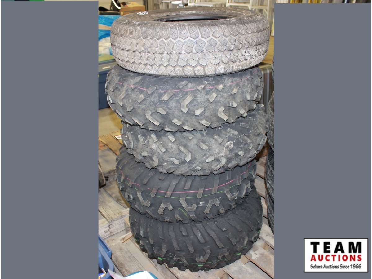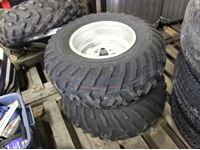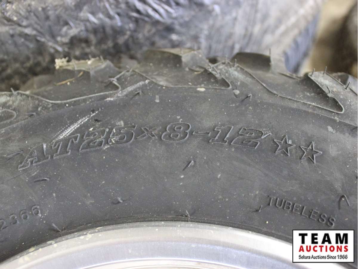 (1) misc Firestone, (2) Dunlop w/rims 25x8-12, (2) Dunlop 25x10-12
