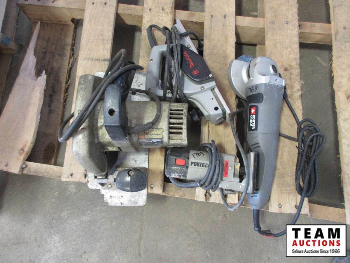 Porter Cable angle grinder & router, Makita planer, B&D circular saw