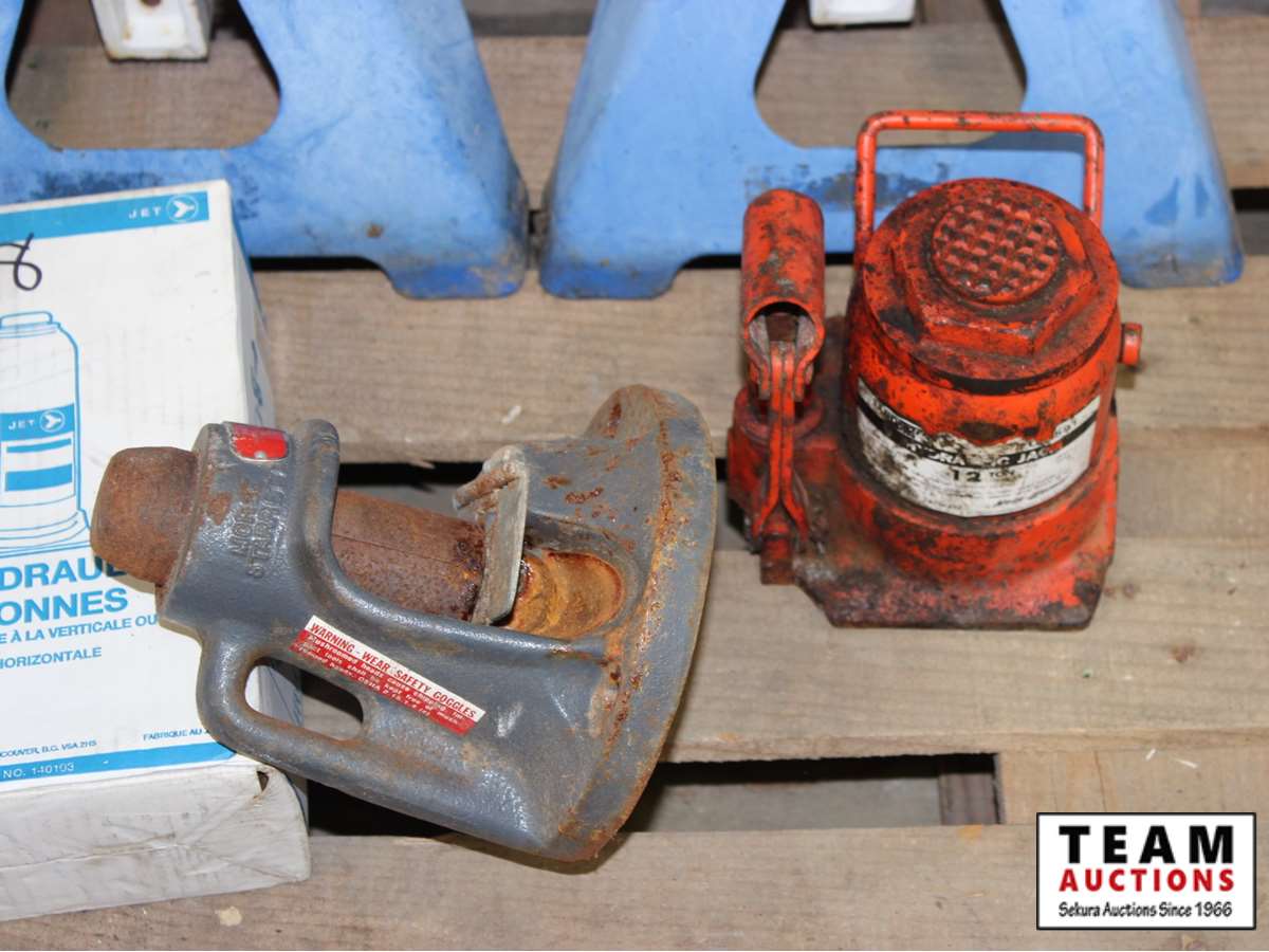(5) blue jack stands 5 ton, hydraulic jack 12 ton, cable cutter