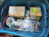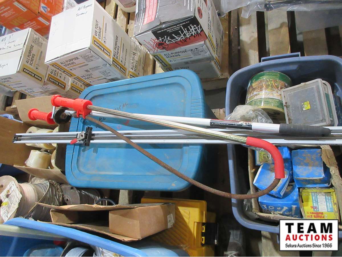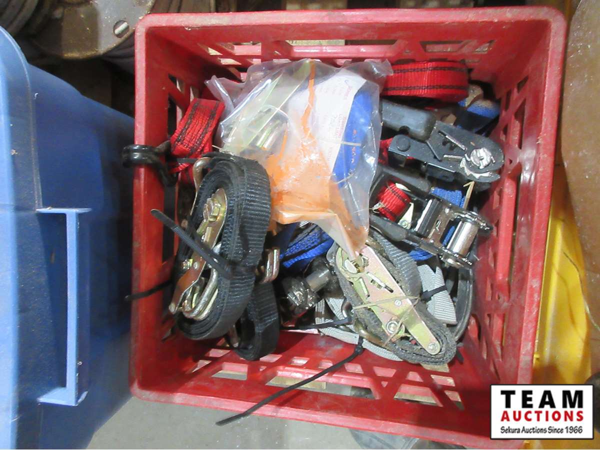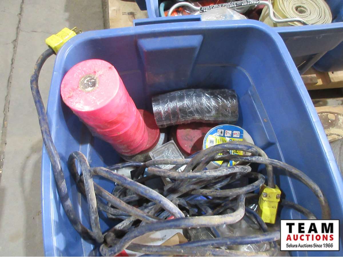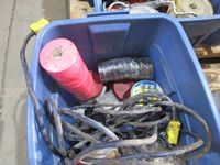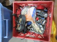 sink snake, wire, tape, flagging ribbon, clear tape, ratchet straps, electrical supplies