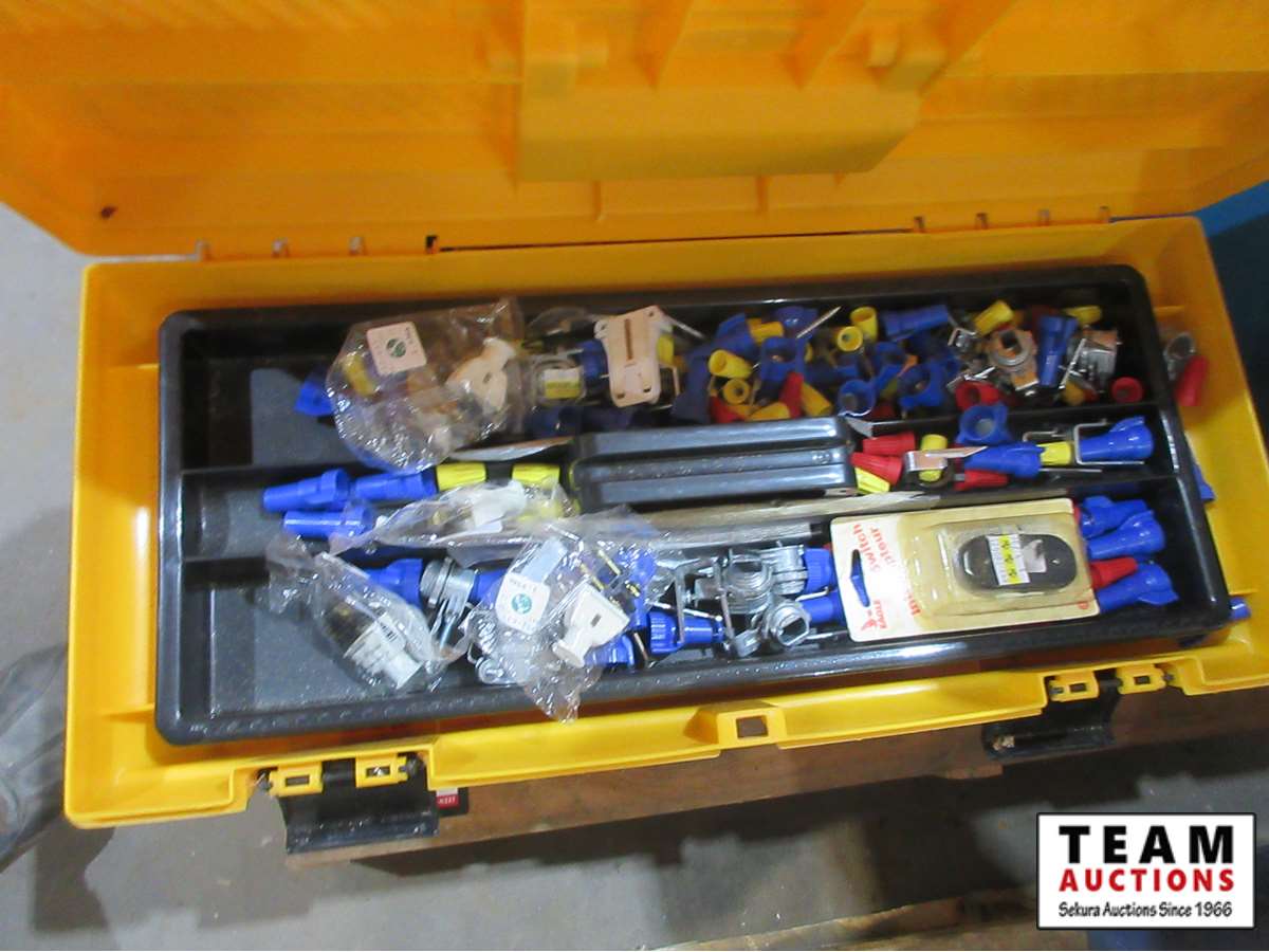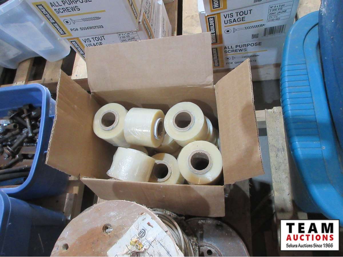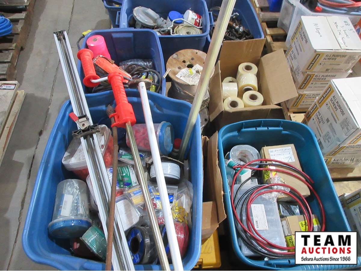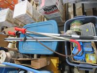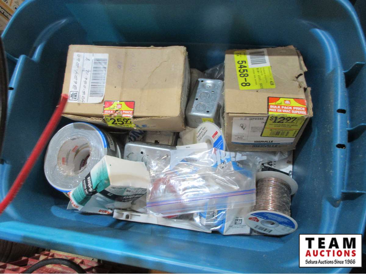 sink snake, wire, tape, flagging ribbon, clear tape, ratchet straps, electrical supplies